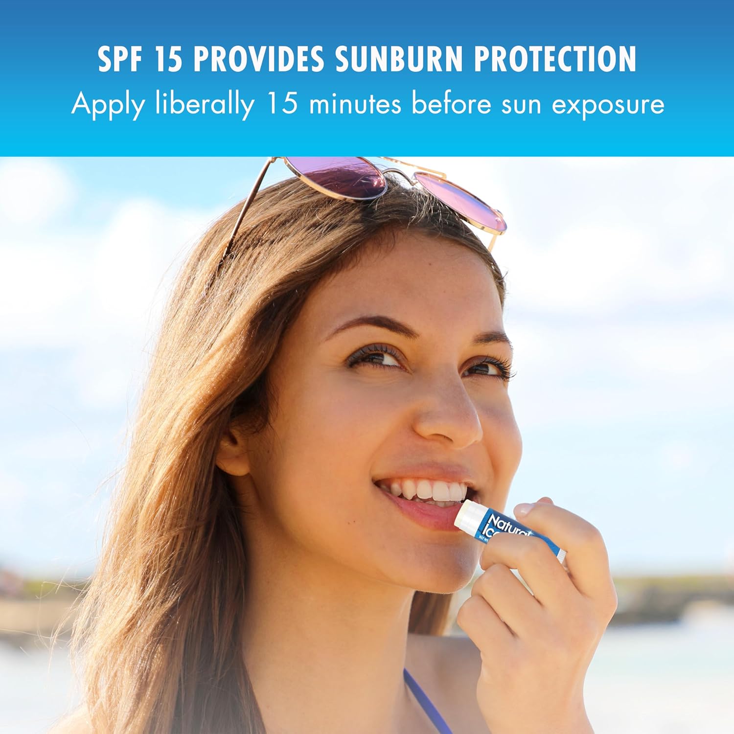 • SPF PROTECTION: Safeguard your lips from the sun's harmful rays with built-in SPF 15. Apply liberally 15 minutes before sun exposure and reapply every two hours (use as directed); Natural Ice Lip Balm is for men, women, and children over 6 months of age