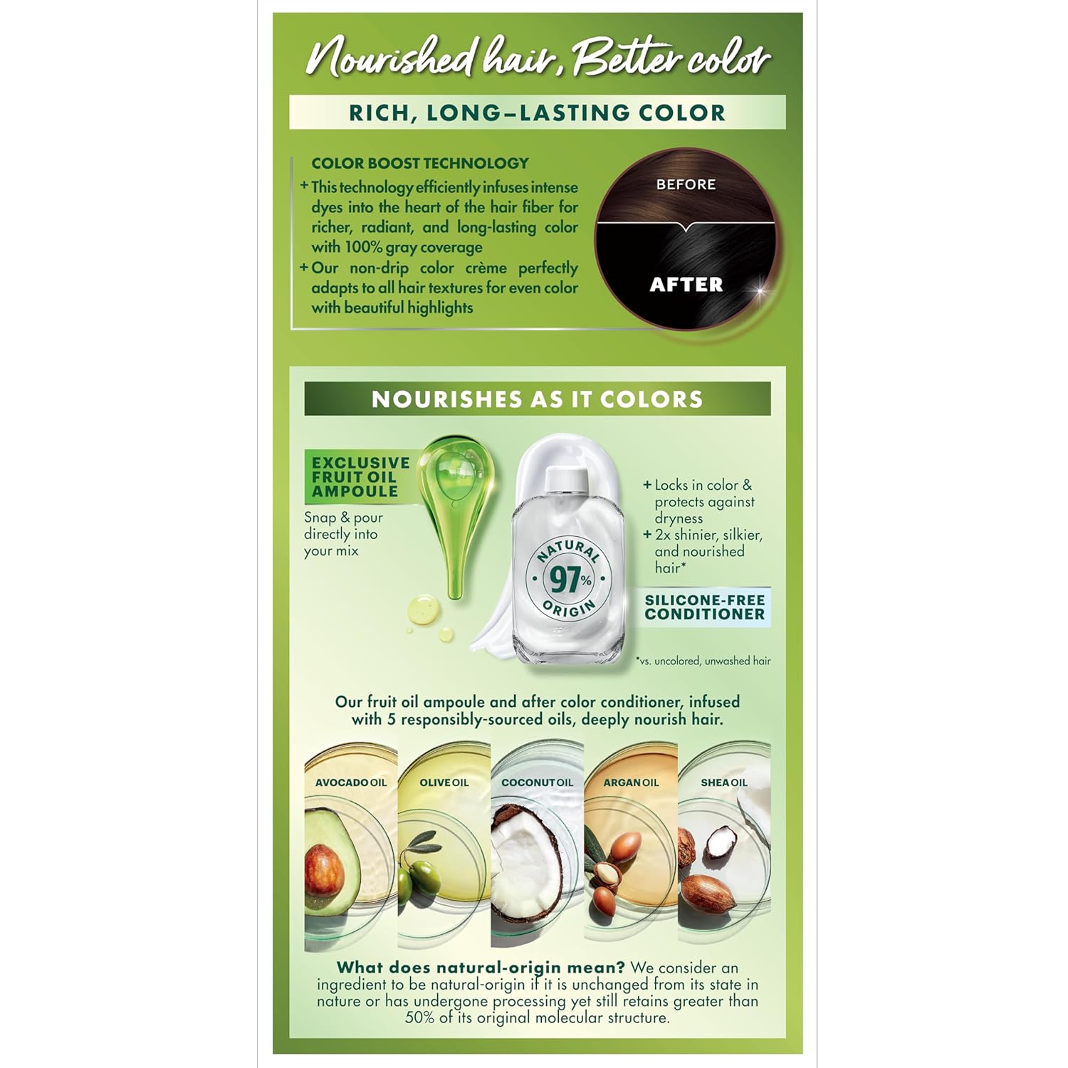 • Product Benefits : Discover the number 1 Nourishing Color Creme; Nutrisse Color is formulated with color boost technology and a blend of triple fruit oils: avocado, olive, and shea, to deliver permanent hair color, even to dark hair Discover the number 1 Nourishing Color Creme; Nutrisse Color is formulated with color boost technology and a blend of triple fruit oils: avocado, olive, and shea, to deliver permanent hair color, e… See more