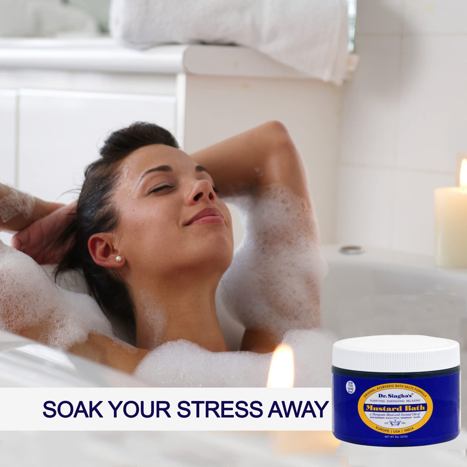 Dr. Singha's Mustard Bath Salts - 8 oz Herbal Bath Soak with Essential Oils for a Relaxing and Rejuvenating Experience - Made in USA