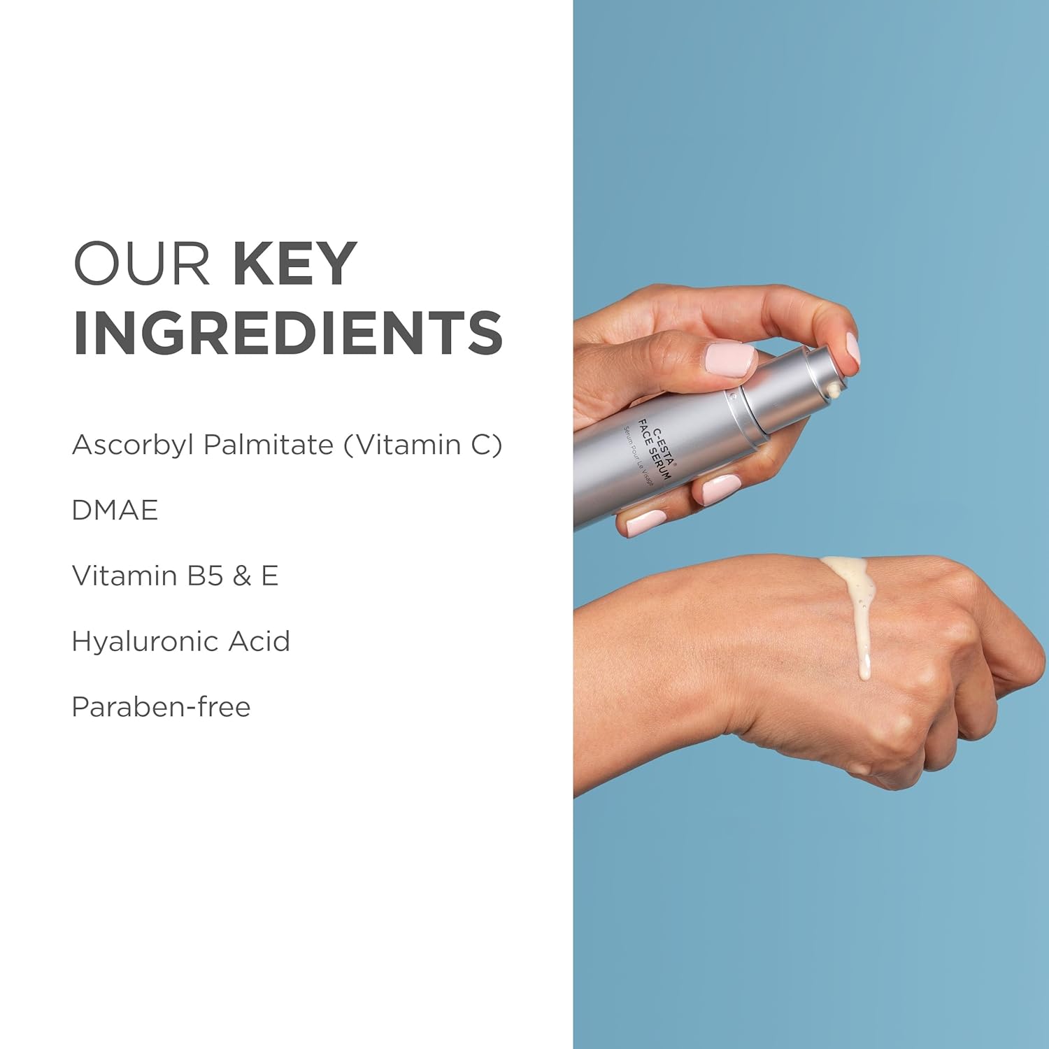 • C-ESTA Serum for Fine Lines: This vitamin C face serum for skincare is good for dark spots, wrinkles, and laxity