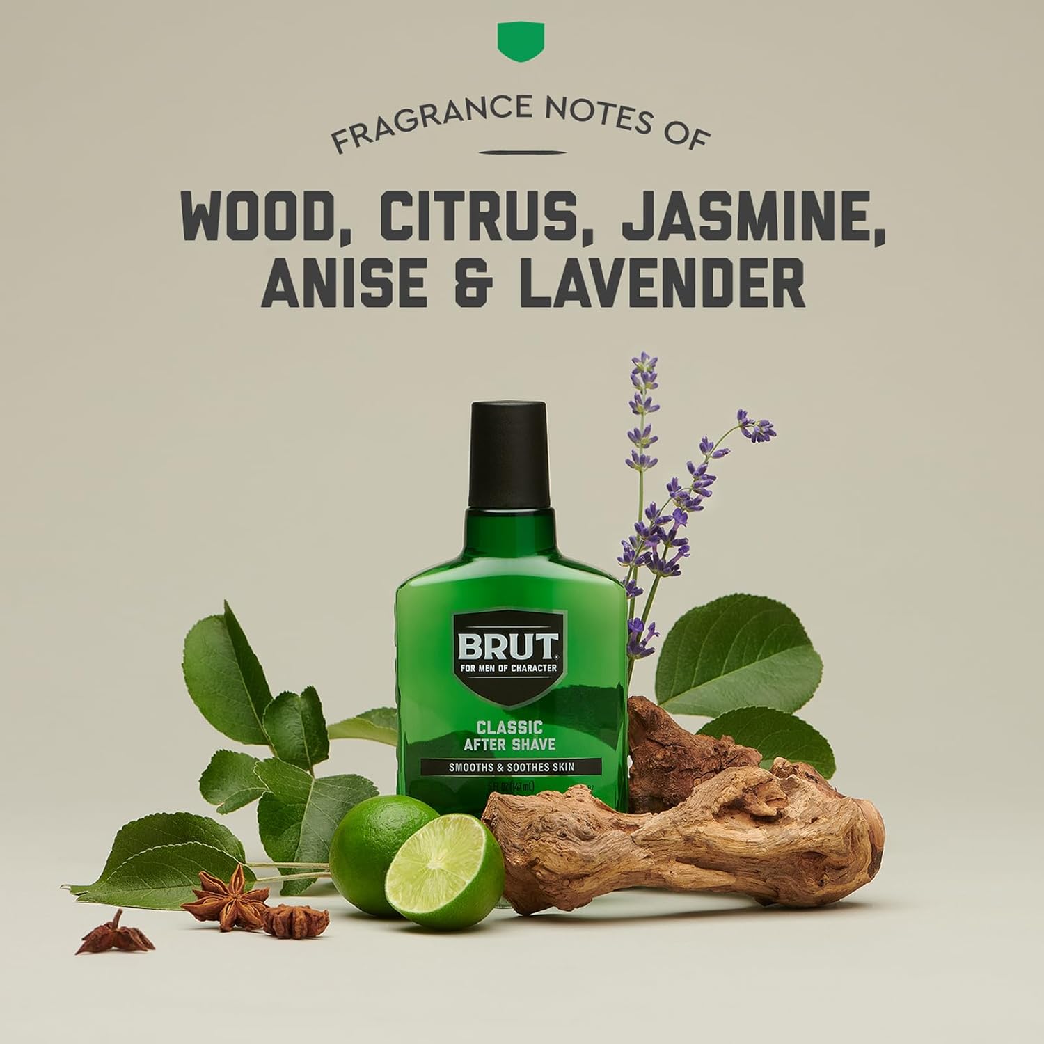 • BOLD, MASCULINE FRAGRANCE. With the classic masculine BRUT fragrance of spicy wood, florals, and citrus notes, this scented after shave for men is designed for individuals who want to smell unique and fresh, all day long.