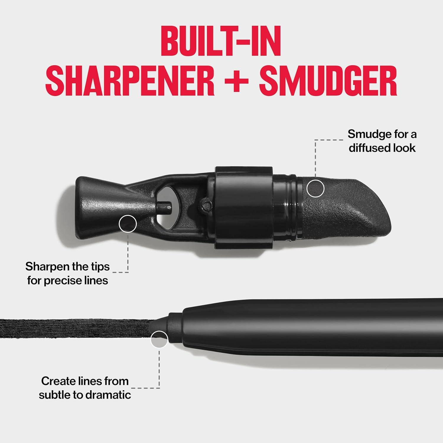 • EASY APPLICATION: Glides on, creating intensely defined lines that can go from subtle to dramatic. Includes built-in sharpener for the perfect pointed tip and a smudger to blend.