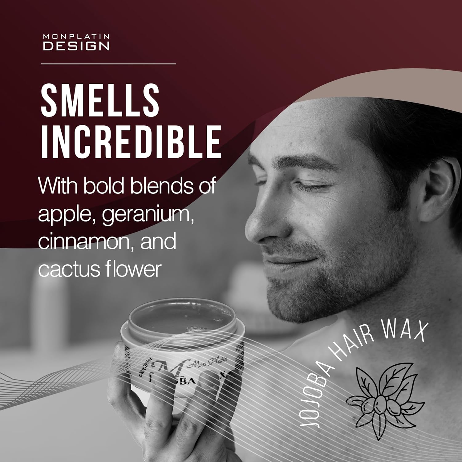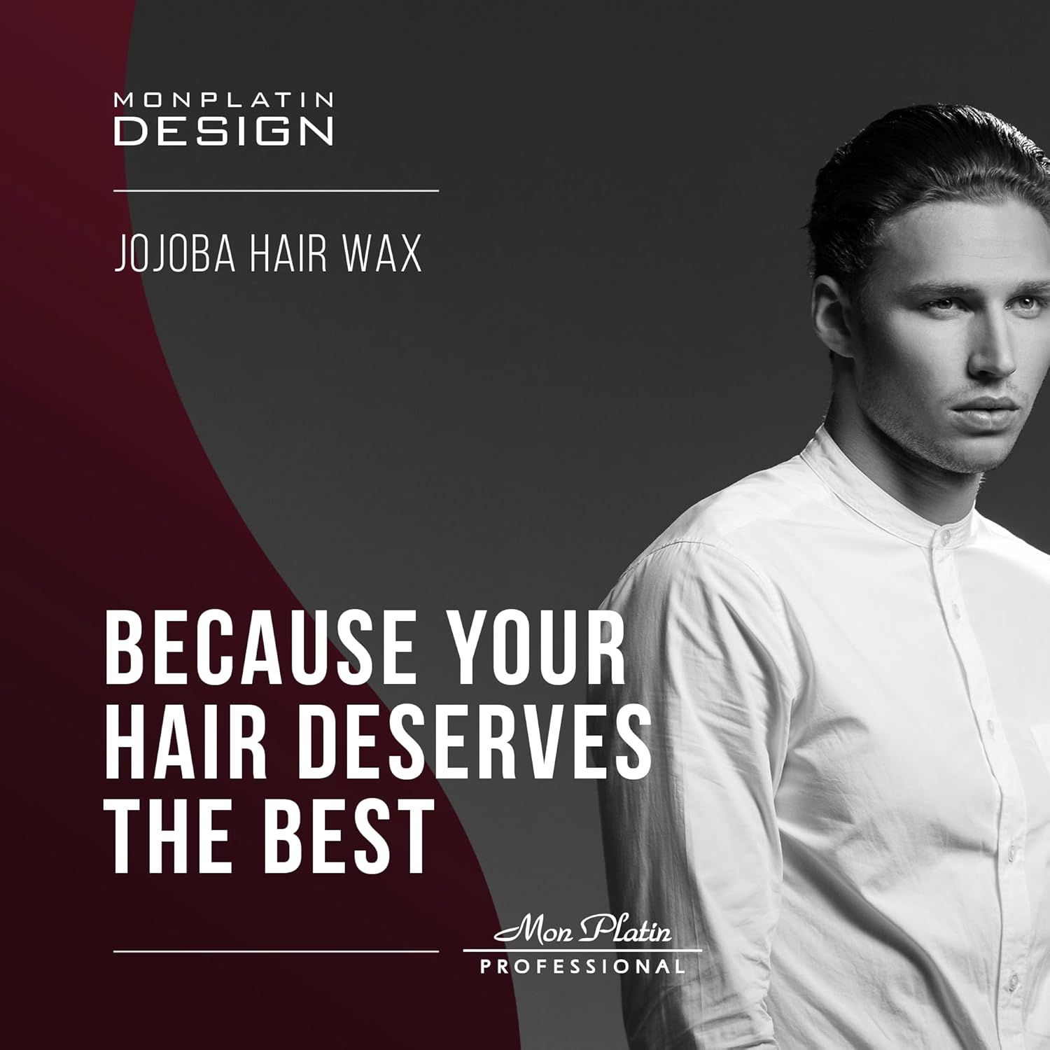 • NOURISHING TREATMENT: Say goodbye to dry, lifeless locks! Our Jojoba Hair Wax is not just your average styling product; it's a nourishing treatment that showers your hair and scalp with organic jojoba extract goodness and smells divine, it's the ideal choice for your daily styling routine. Mon Platin men’s hair wax is easy to rinse out and leaves no sticky or greasy feeling, No residue, just well managed hair.