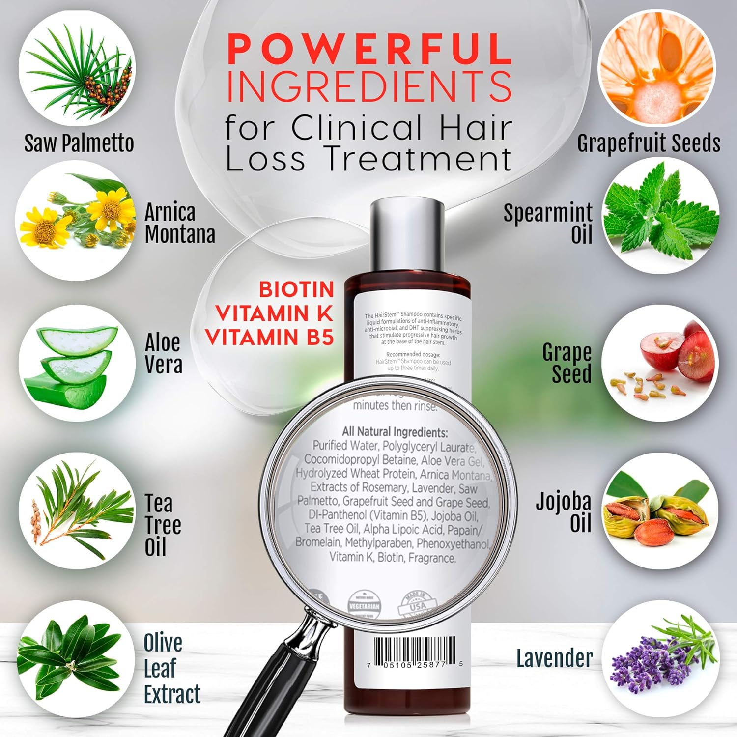 • Clinically developed for hair loss treatments: sulfate free, includes high quality biotin, saw palmetto, tea tea oil, aloe, arnica montana. Our formula is noticeably volumizing, feels and smells great. The hairstem shampoo is infused with powerful vitamins, herbs, and dht blockers ideal for men and women.