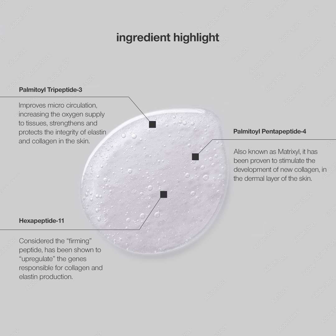 • COLLAGEN: We've packed three firming peptides into this serum that polish fine lines and plump up the surface. Peptides are highly absorbed proteins that help encourage the skin to produce collagen