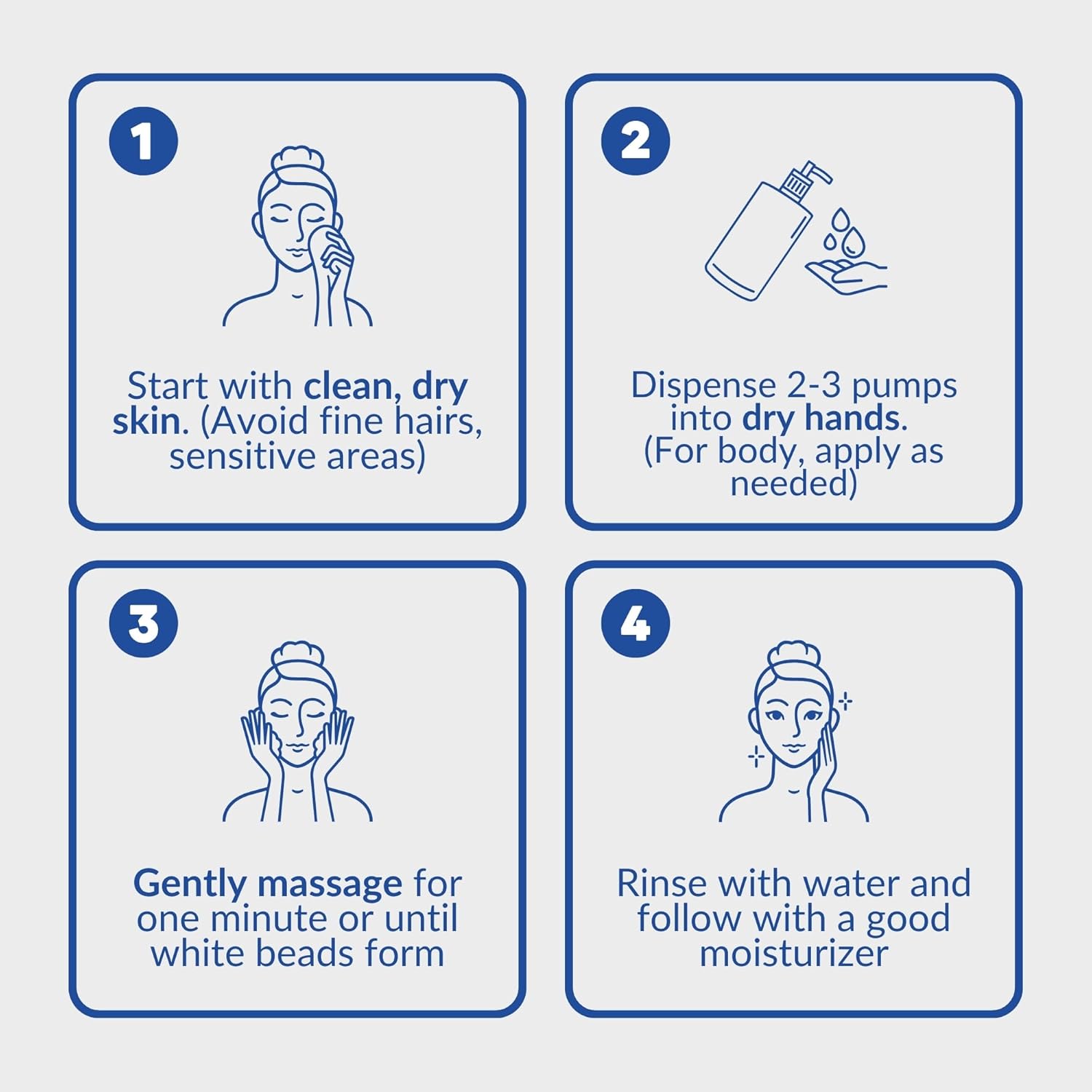 • + FACE & BODY + This exfoliating face and body wash is designed for the face and the body such as the neck, elbows, hands, and heels. Gently buff away dry skin and instantly polish and soften your skin.