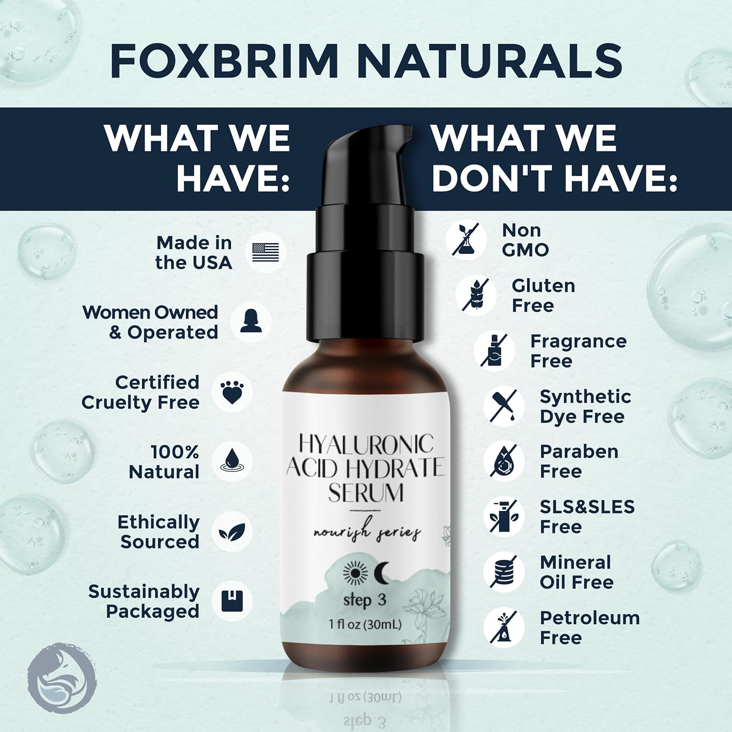 Hyaluronic Acid Face Serum - Hydrating Anti Wrinkle Anti Aging Facial Serum - With Vitamin C and E, Green Tea, Jojoba Oil - Natural and Organic - 1 Oz by Foxbrim Naturals