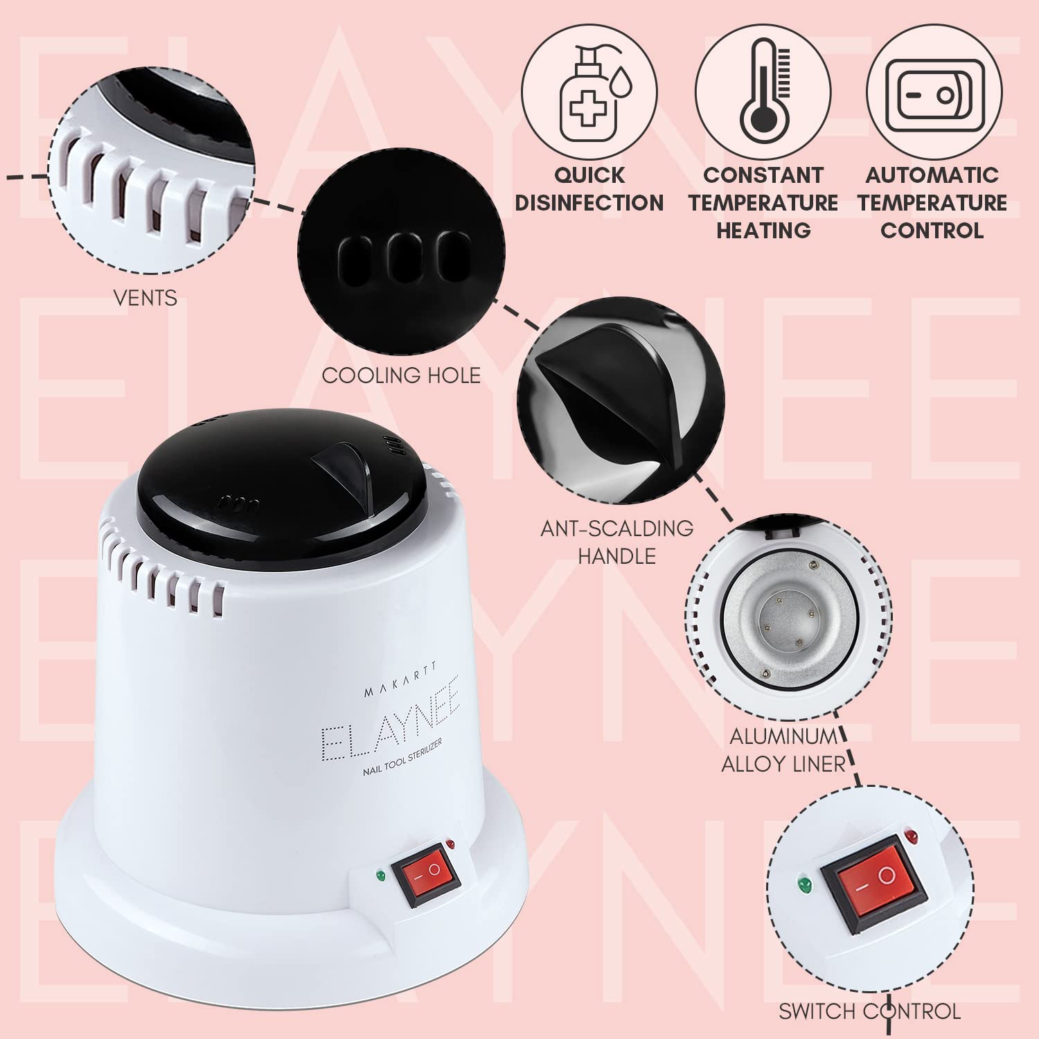 • Nail Sterilizer-Makartt sterilizer for nail tools with small and compact design, which can be put on the desk, convenient to use. Ideal for beauty salons, spas, home, professional and personal use.