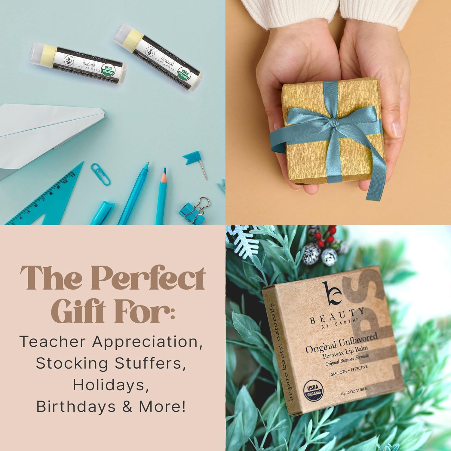 • PERFECT GIFT FOR ANY OCCASION: This organic lip balm set makes 𝐢𝐝𝐞𝐚𝐥 𝐬𝐭𝐨𝐜𝐤𝐢𝐧𝐠 𝐬𝐭𝐮𝐟𝐟𝐞𝐫 chapstick, organic stocking stuffers for women or men. Beautifully packaged and suitable for all, it’s a thoughtful and practical as small gifts for women.
