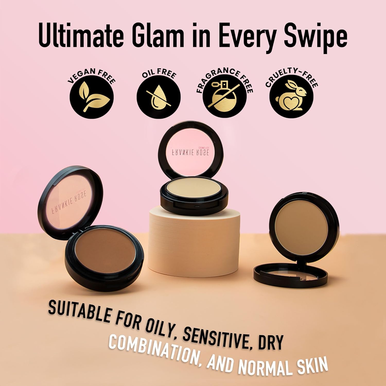 Frankie Rose Cosmetics Powder Foundation – Full Coverage Face Powder For Pores & Imperfections, Evens Out Skin Tone & Shine-Control | 58 Grams (Chestnut)