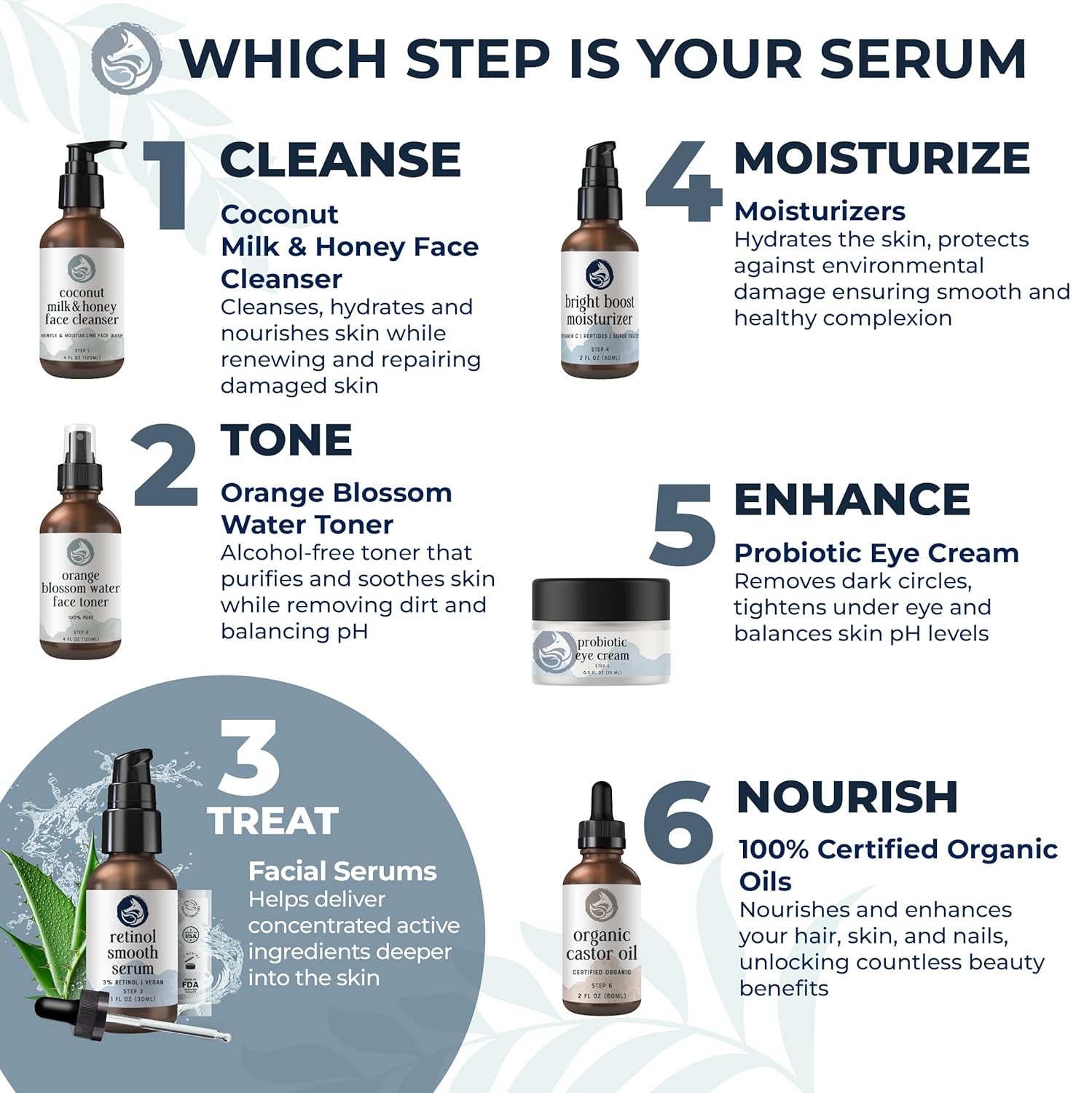 • SMOOTH SKIN - Filled with moisturizers, Our Retinol Facial Serum helps to smooth uneven skin tones and complexion, increase collagen production, reduce pores and fade redness, treats scars.