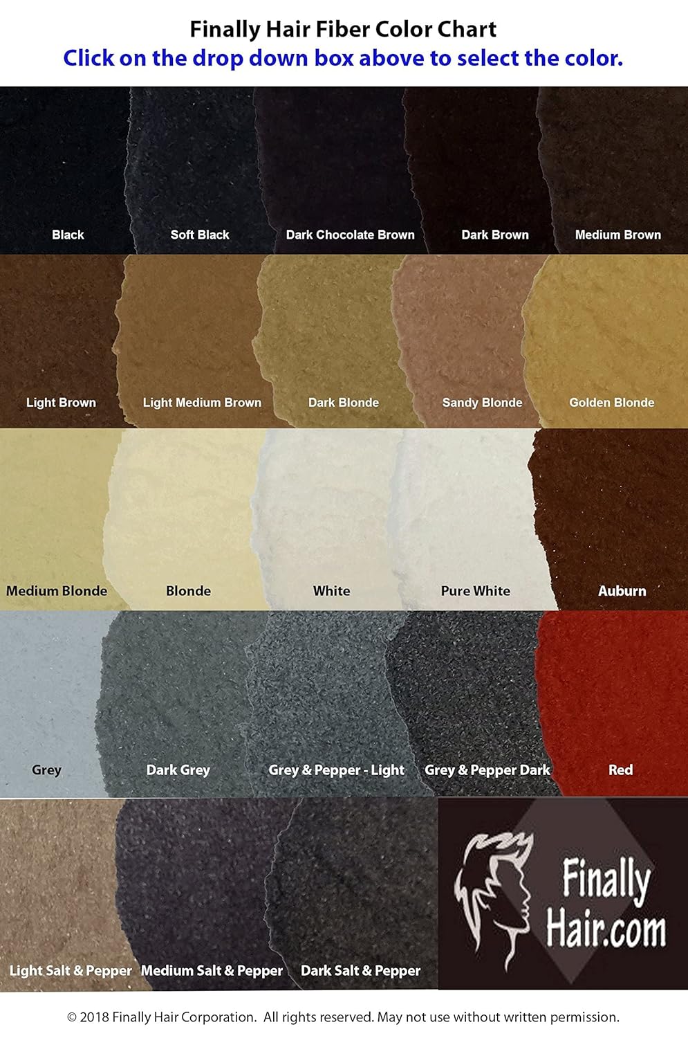 • The Right Shade: Our color chart is made up of the actual hair fibers color matched by a professional photographer. When selecting one of the 23 available shades, always seek to match your hair at the roots. If you think you're between two shades, always go with the darker option -- it'll look the most natural! Fibers that are too light it won't look natural. Matching the color is very important as the fibers will look out of place if they are not the correct color.