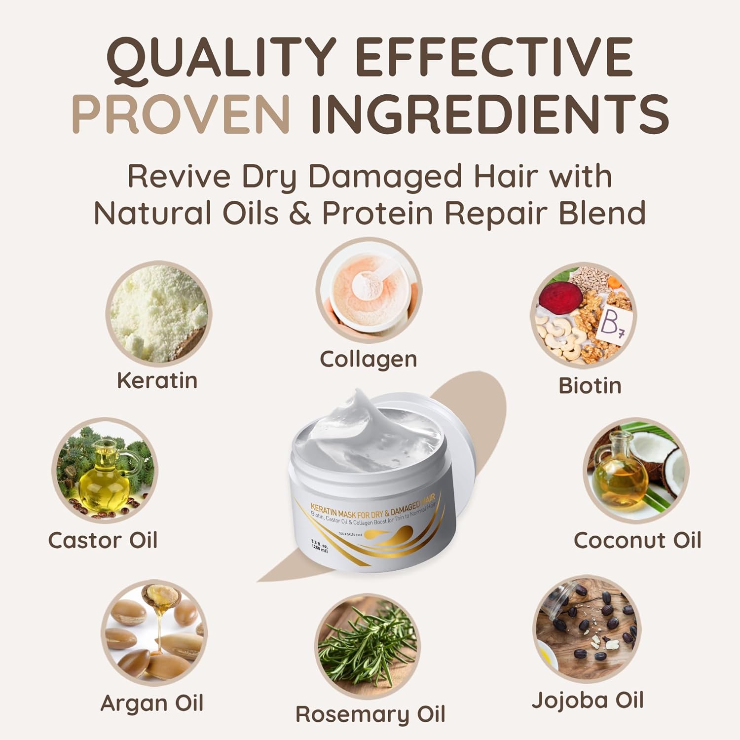 • Salon-Quality Damaged Hair Treatment: Get professional results at home with our deep conditioner for dry damaged hair, a luxurious keratin mask that restores shine, vitality, and manageability