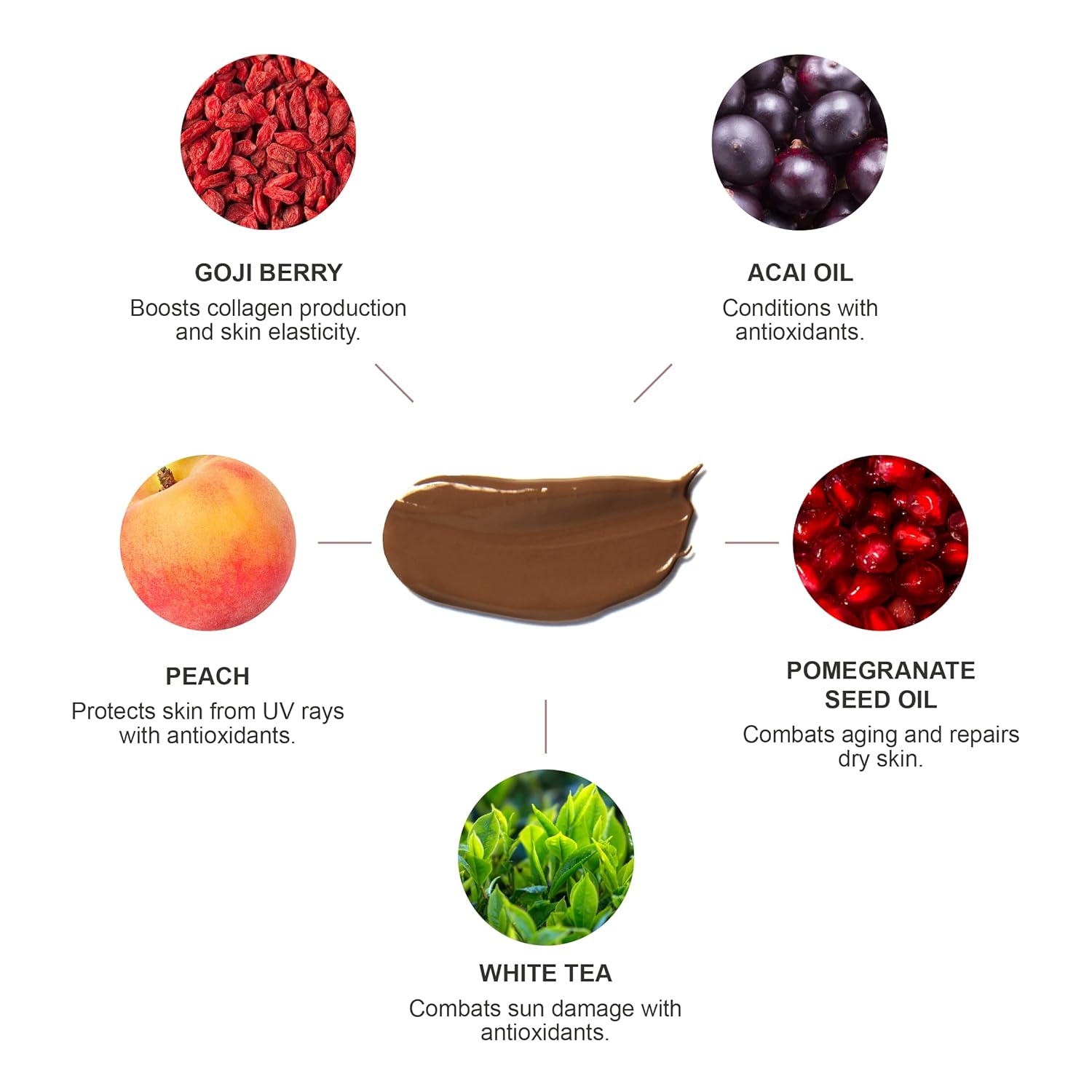 • MOTHER NATURE'S ANTI AGERS - A smooth, lightweight formula helps even out skin tone, perfect for a natural makeup look with the hydrating benefits of antioxidant-rich goji, acai, and pomegranate oils to help combat the appearance of pesky wrinkles.