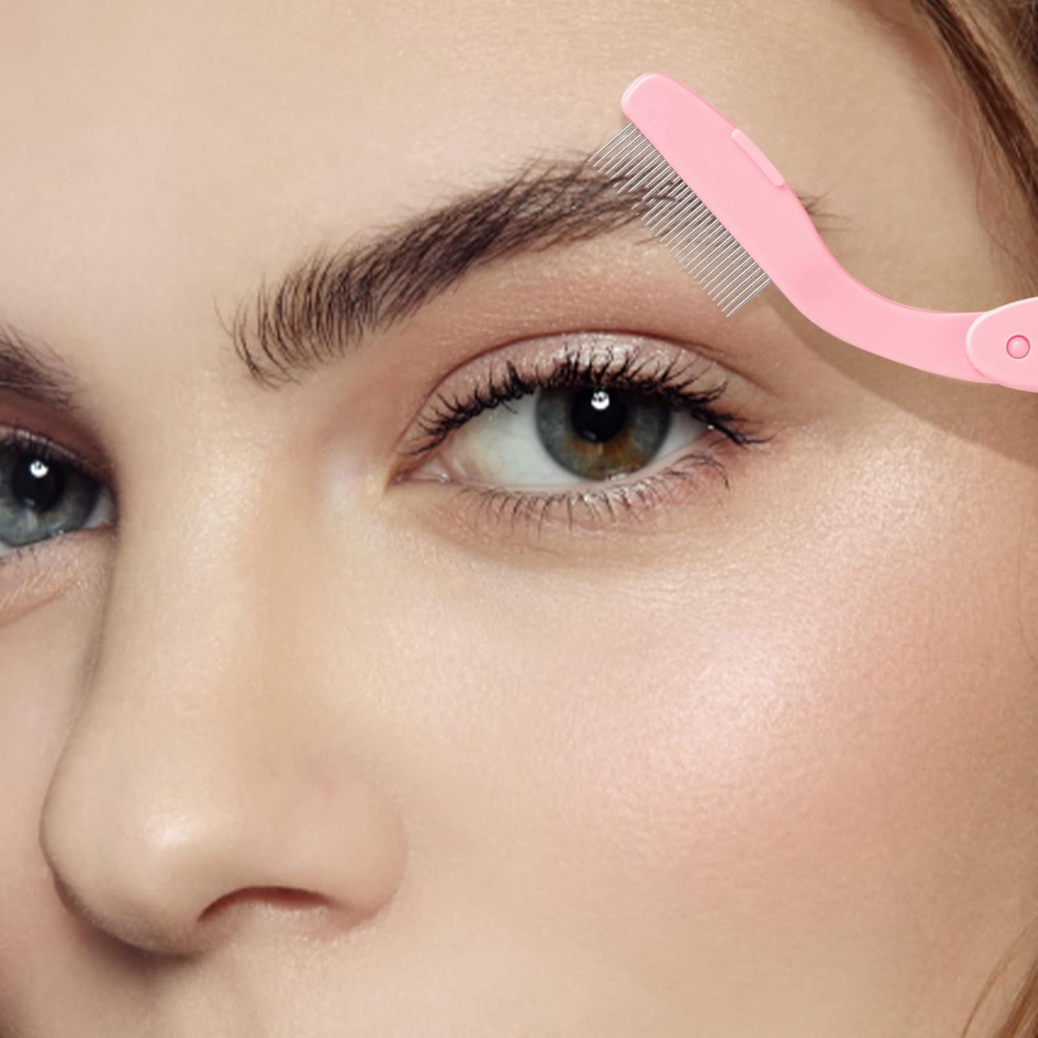 G2PLUS 4PCS Folding Eyelash Comb, Eyebrow Comb Metal Teeth, Eyelash Separator Comb, Eyelash Brush and Comb, Professional Tool for Define Lash & Brow (Pink+Black)