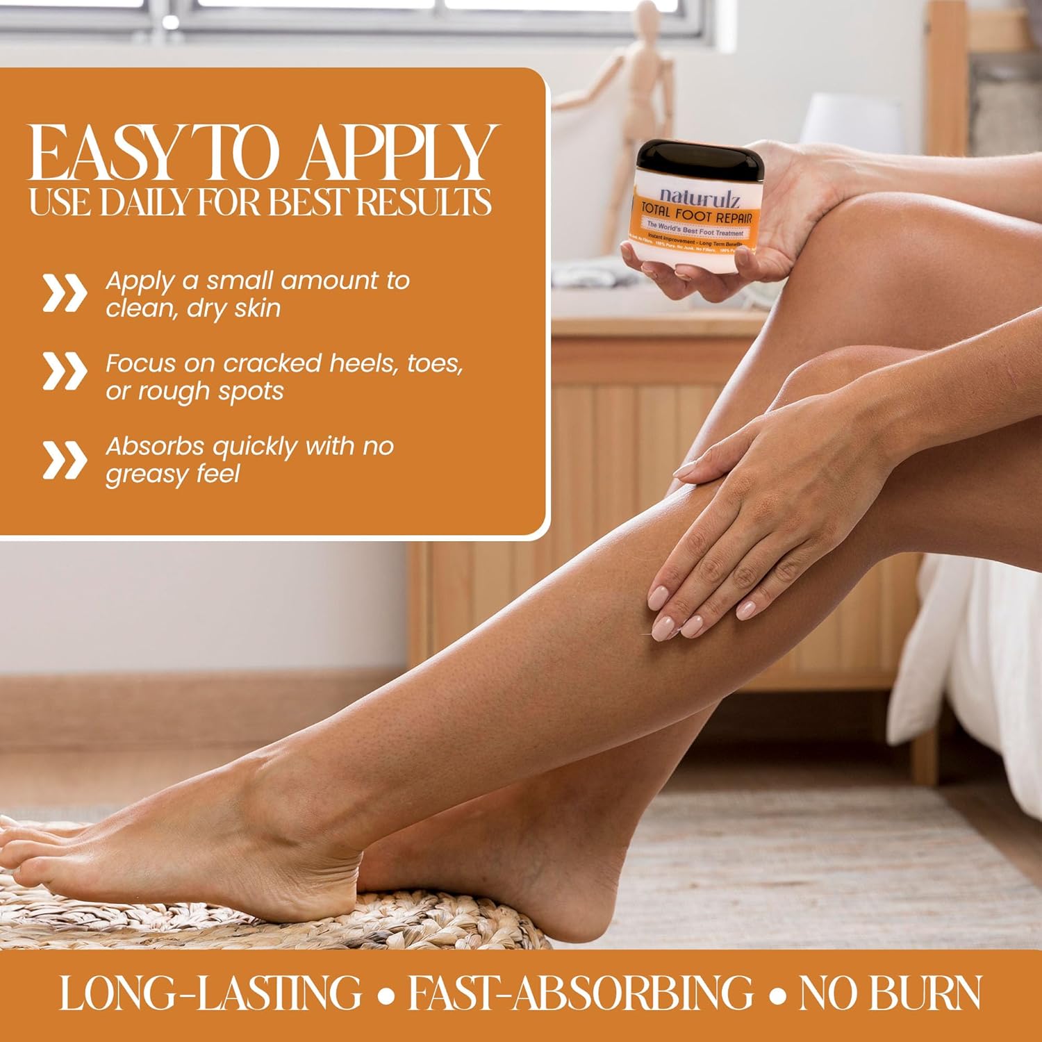 • Nourishing Foot Cream for Dry, Cracked Heels and Feet: Naturulz Total Foot Repair is a hydrating foot cream that improves the appearance of dry, rough skin on heels and feet. Perfect for daily care, it softens and smooths dry areas on feet, elbows, knees, and hands. This rich yet lightweight cream blends easily into all skin types and is ideal for anyone looking for simple, effective foot care as part of a wellness or self-care routine.