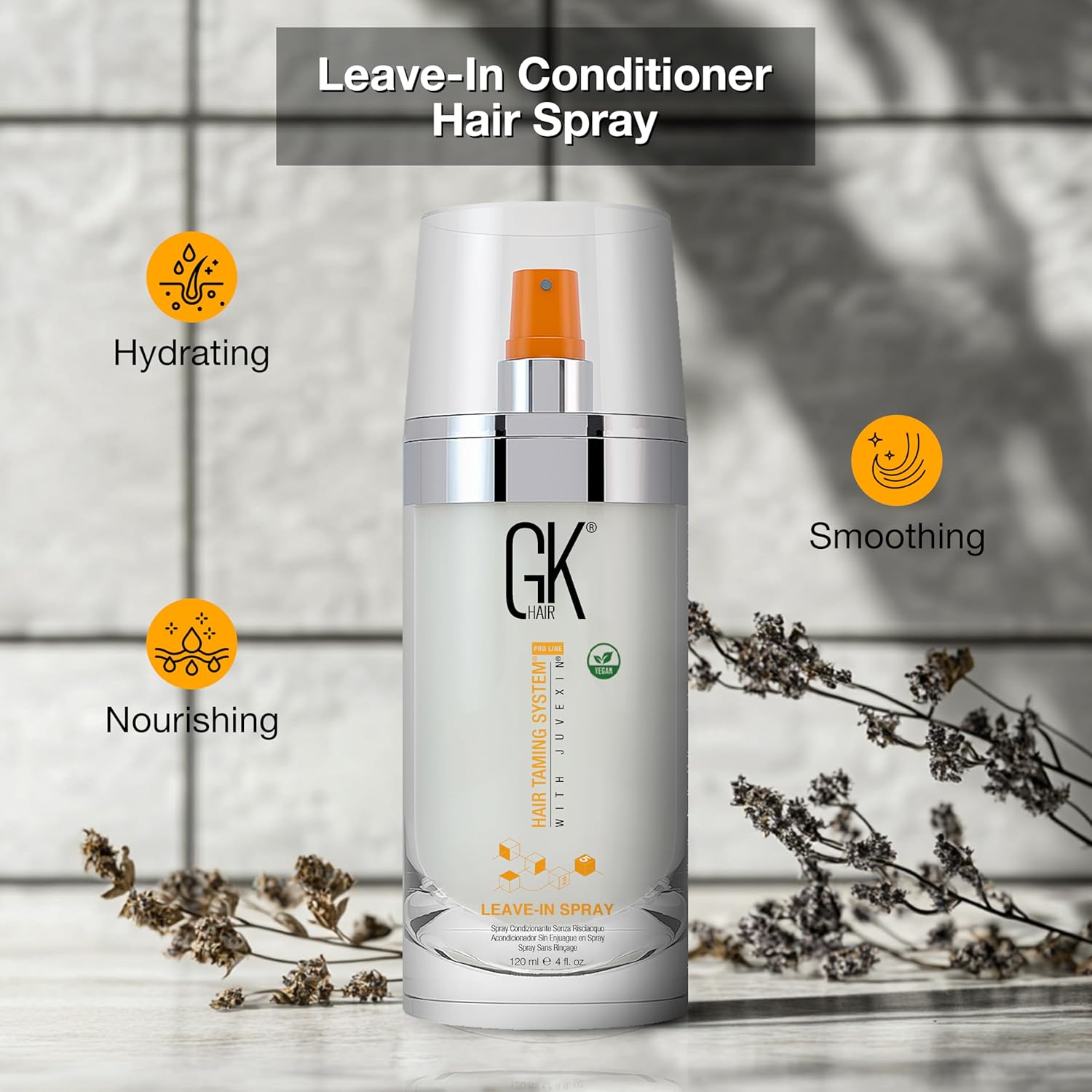 GK HAIR Vegan Leave In Conditioner Spray – Lightweight Detangler Spray For Frizz Control & Heat Protectant for All Hair Types, 120ml