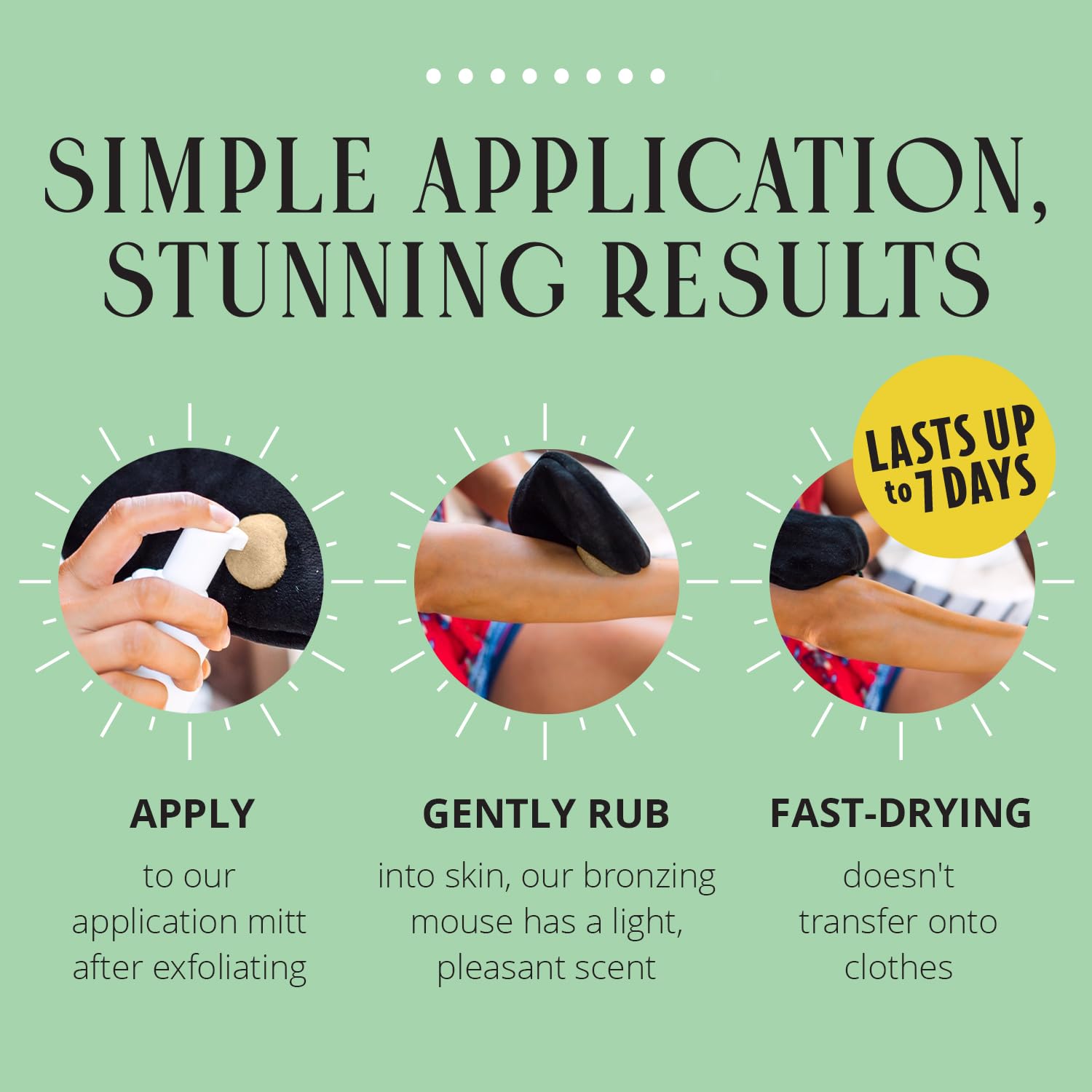 • Easy Tanning: Tan in minutes! Unlike a self tanning lotion, this fast-drying tanning foam dries quickly and is easy to apply; For optimal results, apply the instant tan with a Skinerals tanning mitt or pad for a tan that lasts up to 7 days