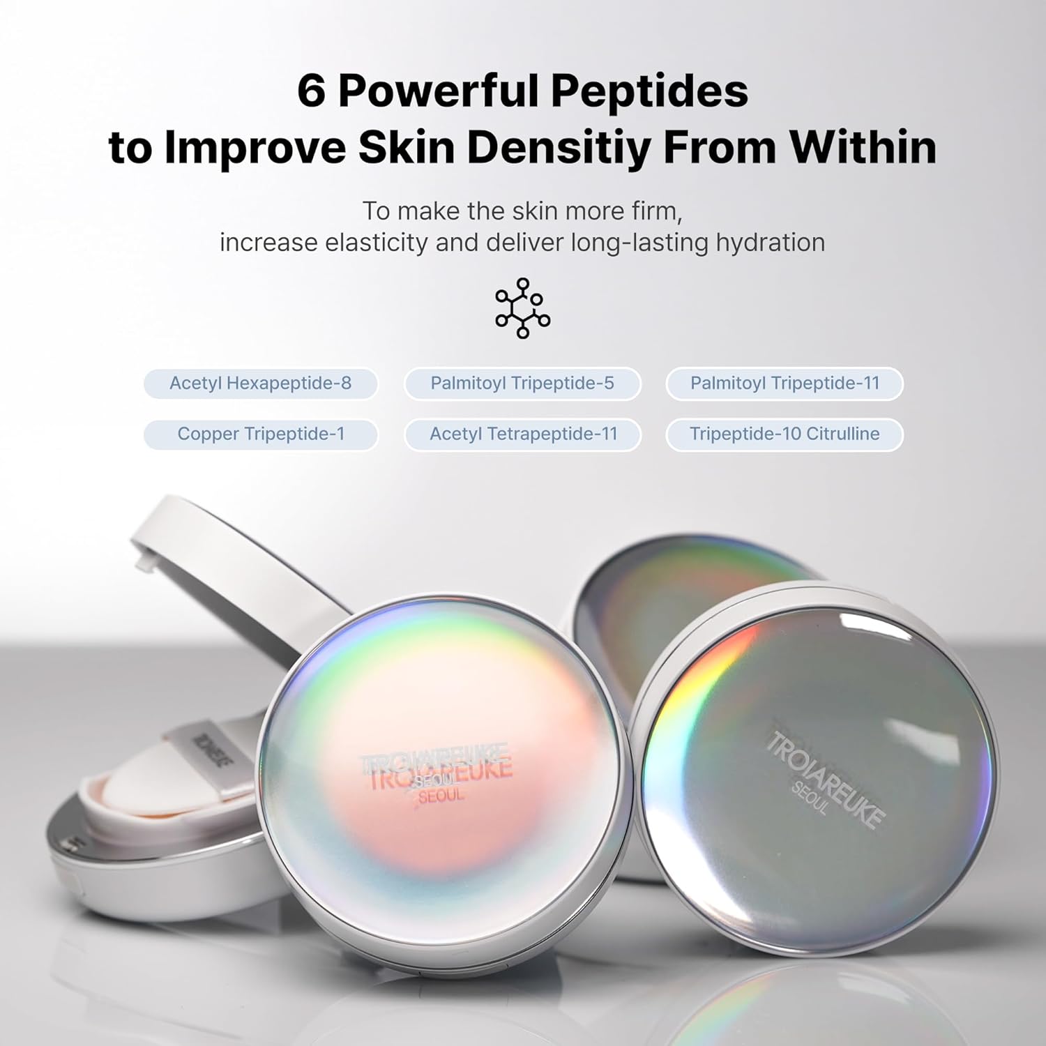 TROIAREUKE Seoul "Bridal" Cushion Foundation(#22, Yellow Beige), Korean Cushion Foundation, K-Beauty, Hydrating, Long-lasting, Lightweight, Natural Finish, Anti-Aging, Moisture, Whitening, SPF 50+