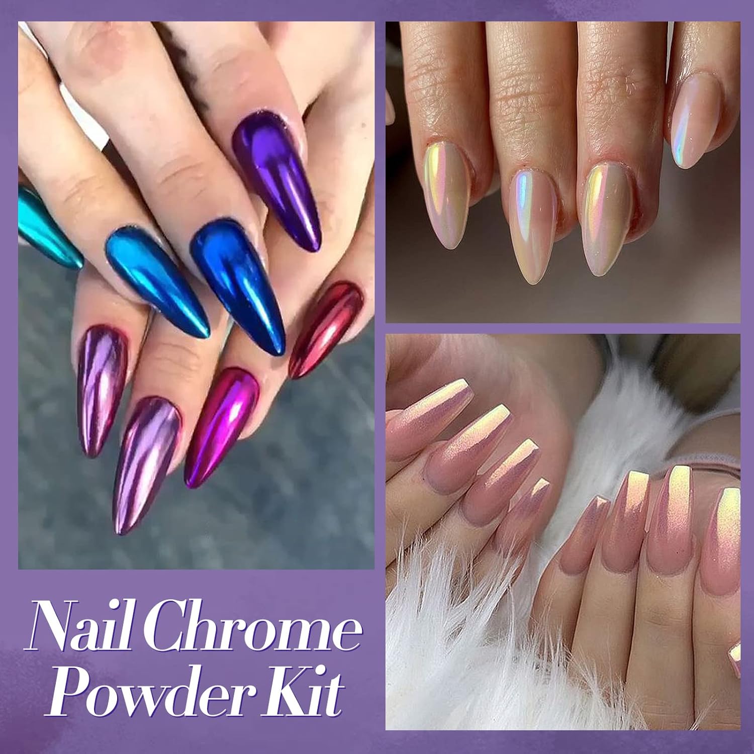 • MULTIPLE EFFECTS - Chrome effect when you apply it on black base gel, pearlescent effect and iridescent nail when you apply it on white base gel. Ultra fine powder takes great chrome and chameleon pearlescent effect. Itmade of 100% pure synthetic resin powder, non-toxic, long-lasting. Smooth and non-grainy texture.