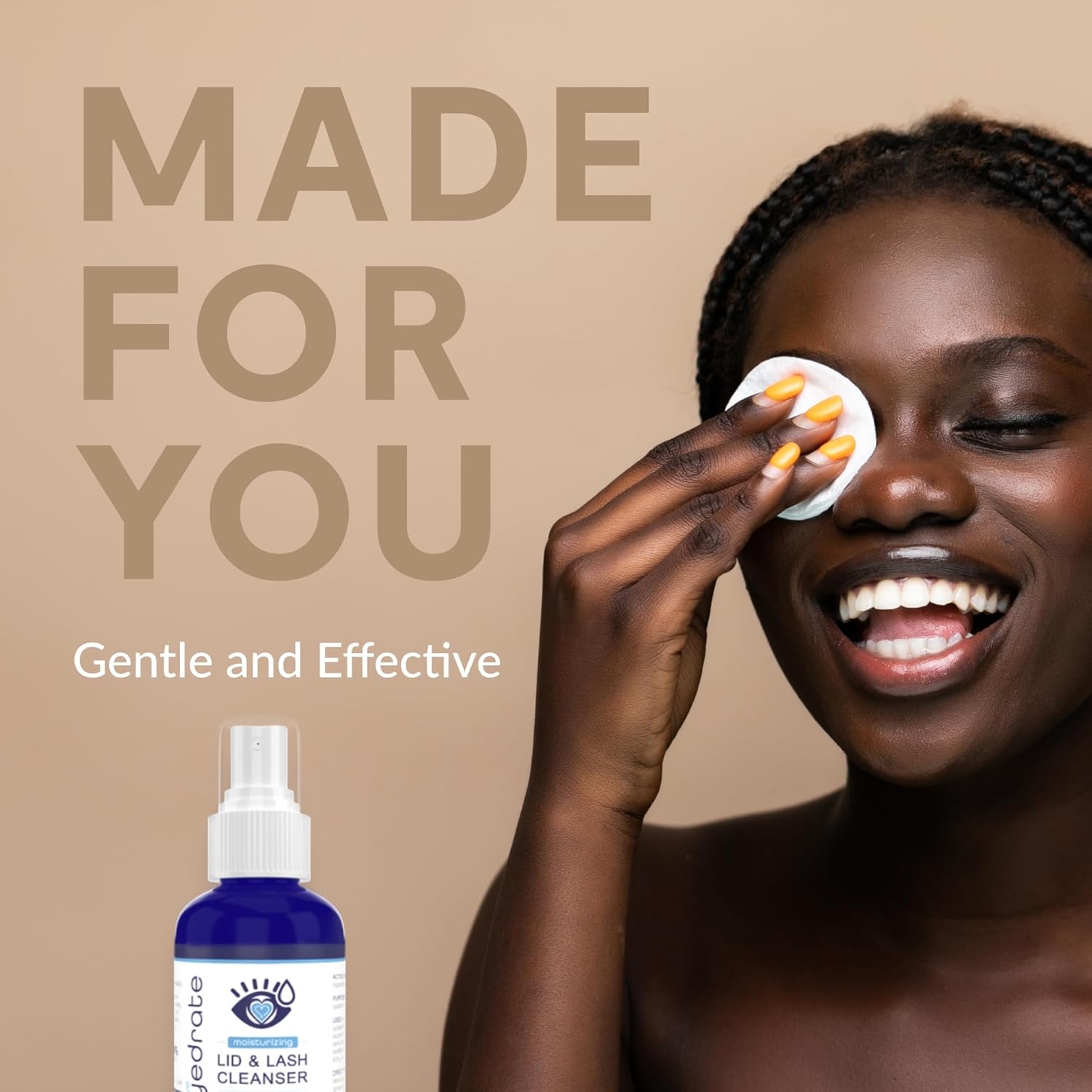 • Soothing daily cleanse: Heyedrate hypochlorous acid spray for face and eyelid cleansing is designed to cleanse deep into the eyelid and lash area to help remove any daily buildup, debris or makeup