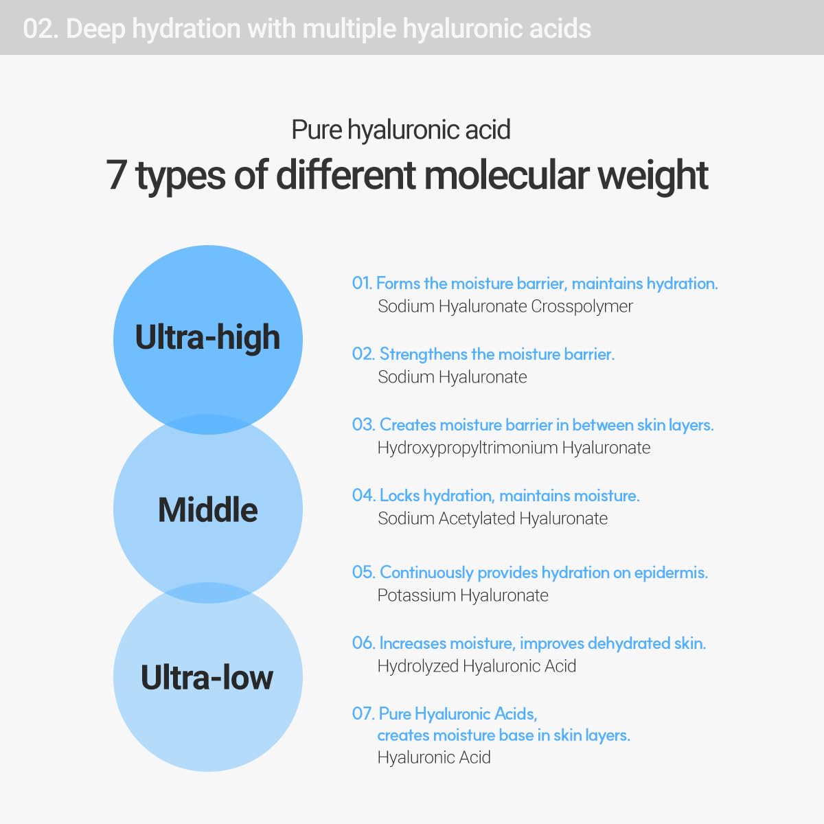 • Active Ingredients: 7 different types of Hyaluronic Acid hydrate skin from the deepest layer to the outermost layer. Ingredients such as caffeine de puffs and soothes skin, while Vitamin E in Papaya fruit extract helps smooth out skin's texture. Meanwhile, the natural ingredients in this gentle face toner work to calm sensitive skin.
