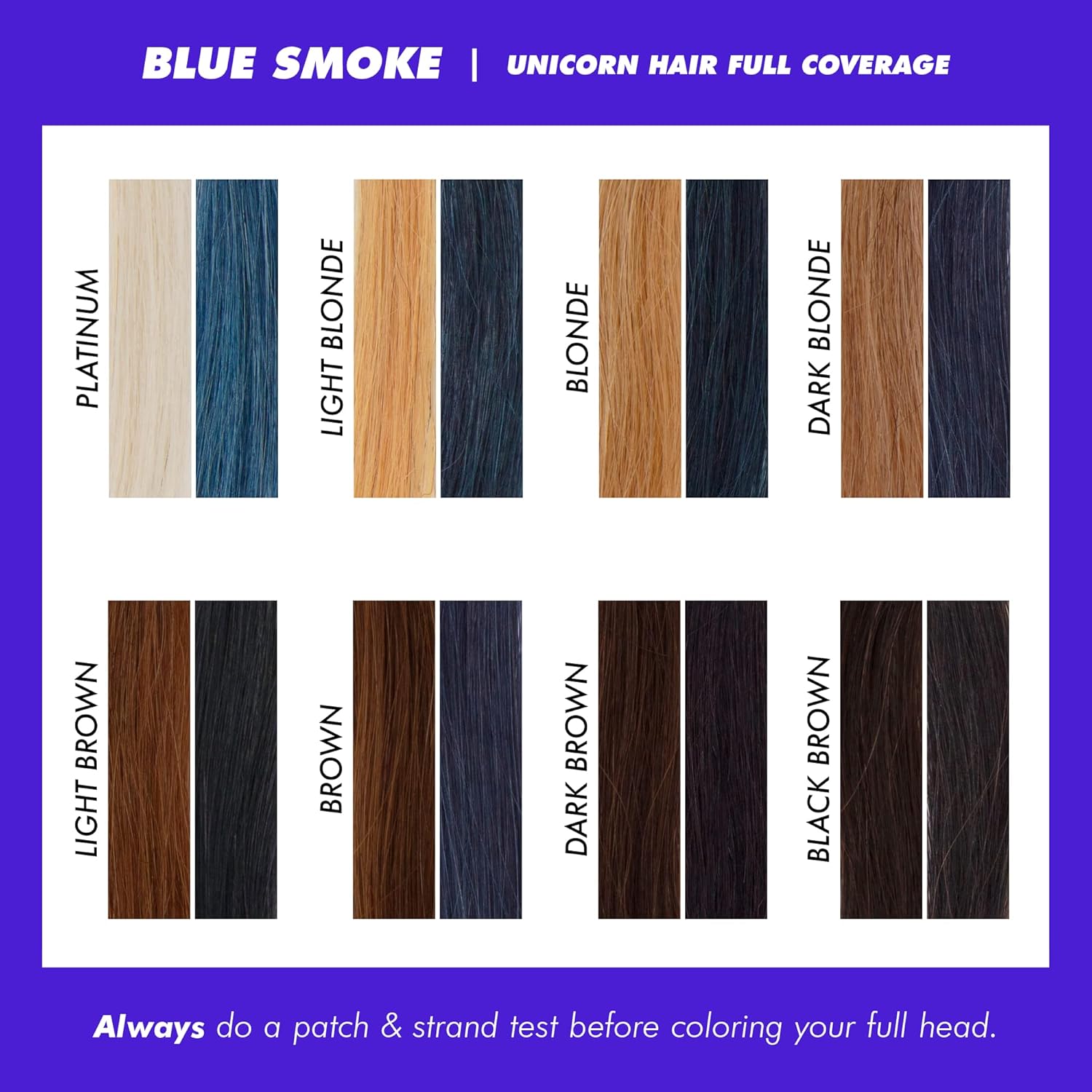 • Blue Smoke Unicorn Hair Dye: Dyed and gone to Unicorn Heaven! Lime Crime Unicorn Hair is a DIY-friendly, semi-permanent color dye that transforms hair into vibrant colors... all from the comfort of your own home. Blue Smoke is a steel blue color that will make your fantasy hair color dreams come true, and its sugary citrus vanilla scent will make your transformation even sweeter!
