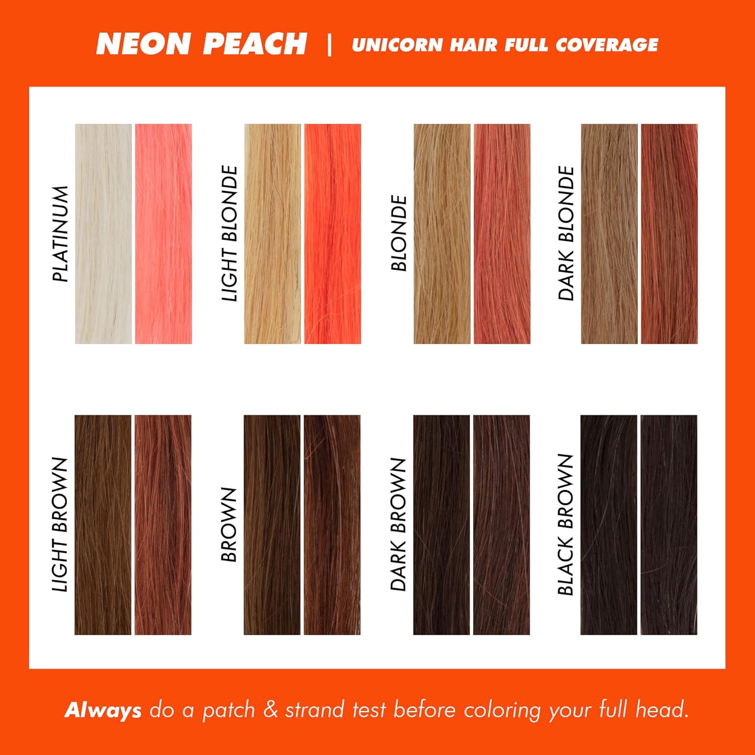 • Neon Peach Unicorn Hair Dye: Dyed and gone to Unicorn Heaven! Lime Crime Unicorn Hair is a DIY-friendly, semi-permanent color dye that transforms hair into vibrant colors... all from the comfort of your own home. Neon Peach is a vibrant peach color that will make your fantasy hair color dreams come true, and its sugary citrus vanilla scent will make your transformation even sweeter!