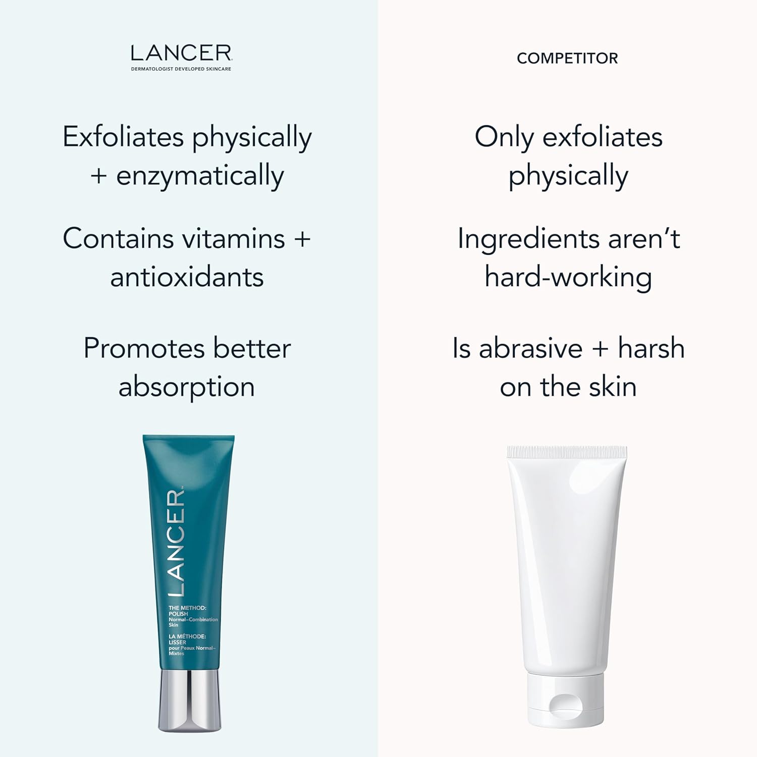 Lancer Skincare The Method: Polish Facial Exfoliator, Daily Exfoliating Face Scrub with Natural Minerals, Normal Combination Skin, 8 Fluid Ounces