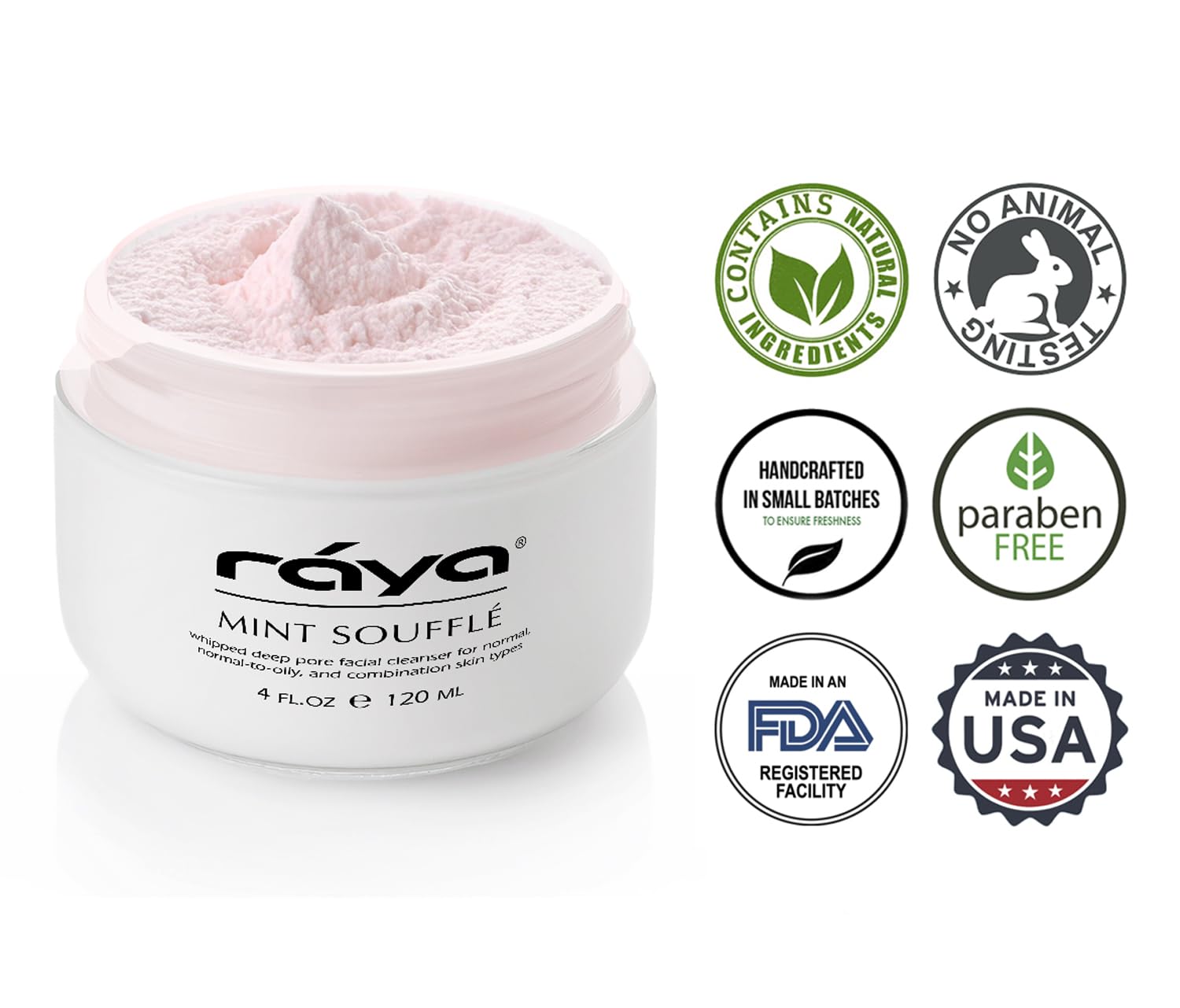 RAYA Mint Soufflé Facial Cleanser 4 oz (102) | pH Balanced Face Wash for Oily and Combination Skin| Helps Clear Clogged Pores and Smooth Complexion