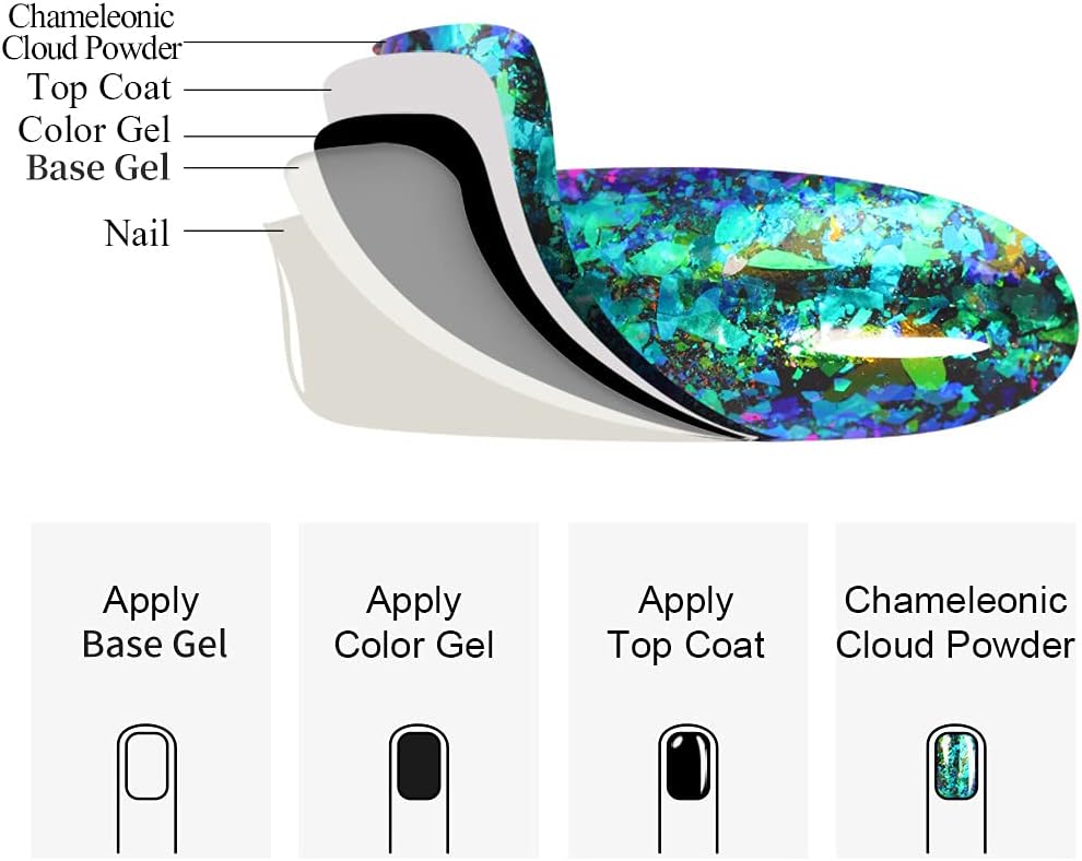 • MULTIPLE EFFECTS - Apply it on black base gel and white base gel will get different chameleon effect.It made of 100% pure synthetic resin powder, non-toxic, long-lasting. Smooth and non-grainy texture.
