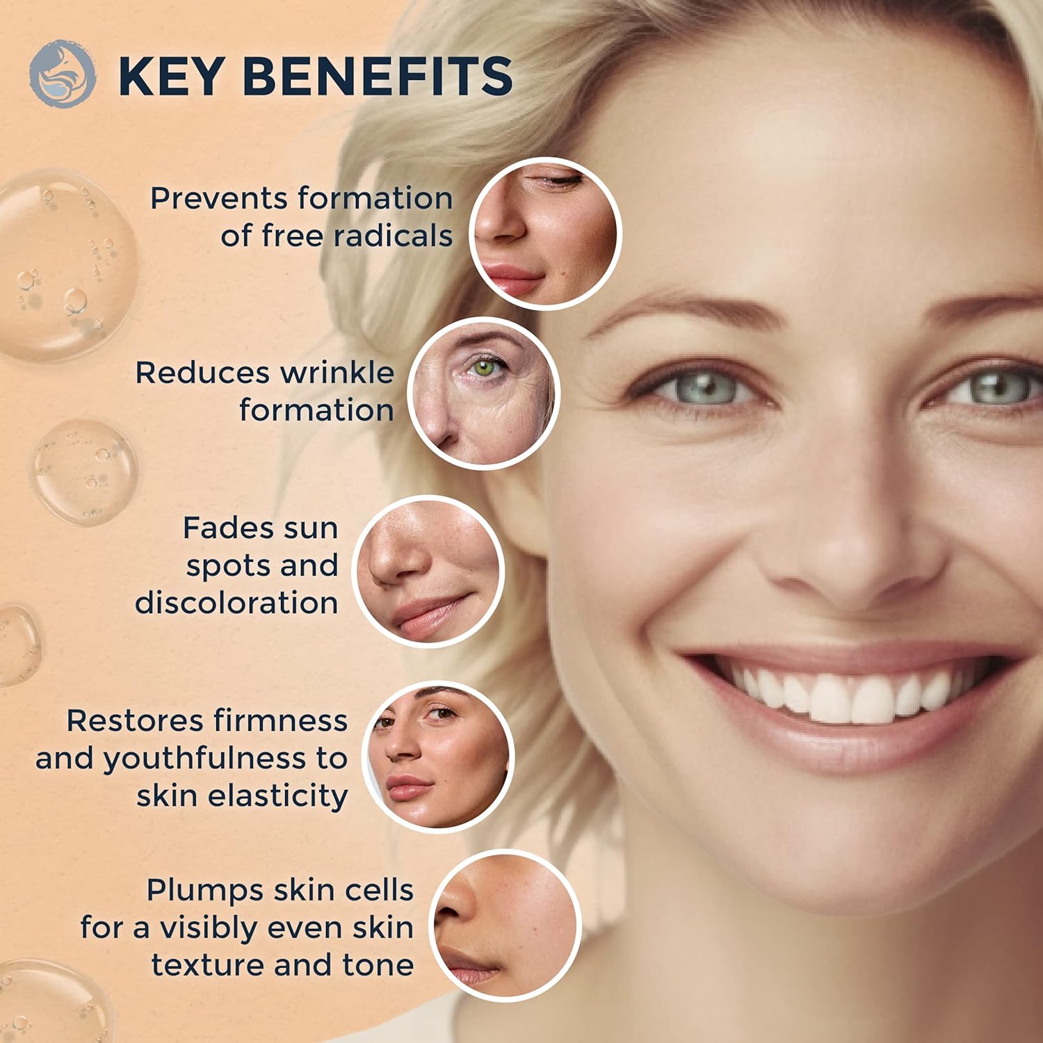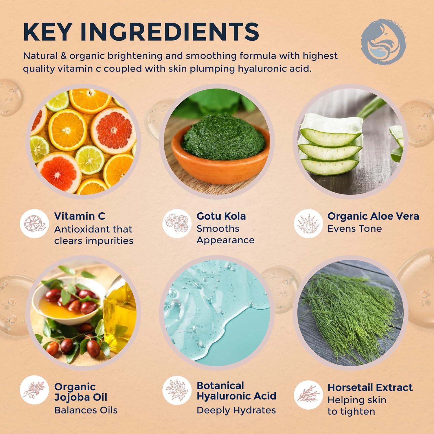• ALL NATURAL VITAMIN C FACIAL SERUM - Brighten & Hydrate skin, restore firmness & elasticity to skin, even skin tone, fade fine lines and wrinkles & dark spots, while helping to fight back against pollutants and sun damage.