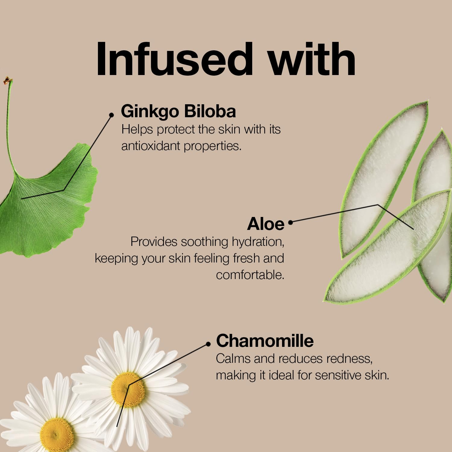 • BOTANICAL AND VITAMIN INFUSED COSMETICS: Infused with apricot, chamomile, ginkgo biloba, aloe (skin conditioning), coconut oil (skin softening) & ginseng
