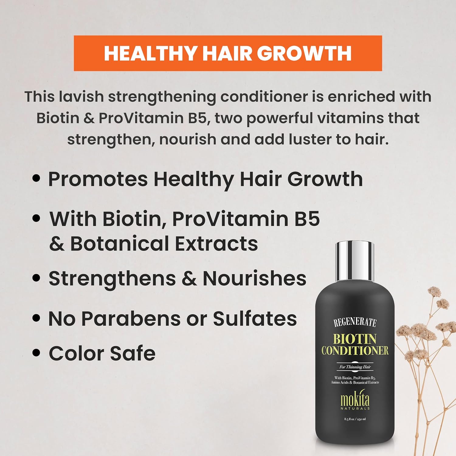 • The Strong, Thick and Shiny Hair That You Deserve - Provide your hair with the unique care that it deserves with Mokita Naturals nourishing hair conditioner. All you need to do is work this conditioner through wet hair AFTER shampooing with our Regenerate Volumizing Shampoo. Massage your scalp and leave in for 1-5 minutes. Do not forget to rinse. Your hair will no longer be weak, thinning or falling.