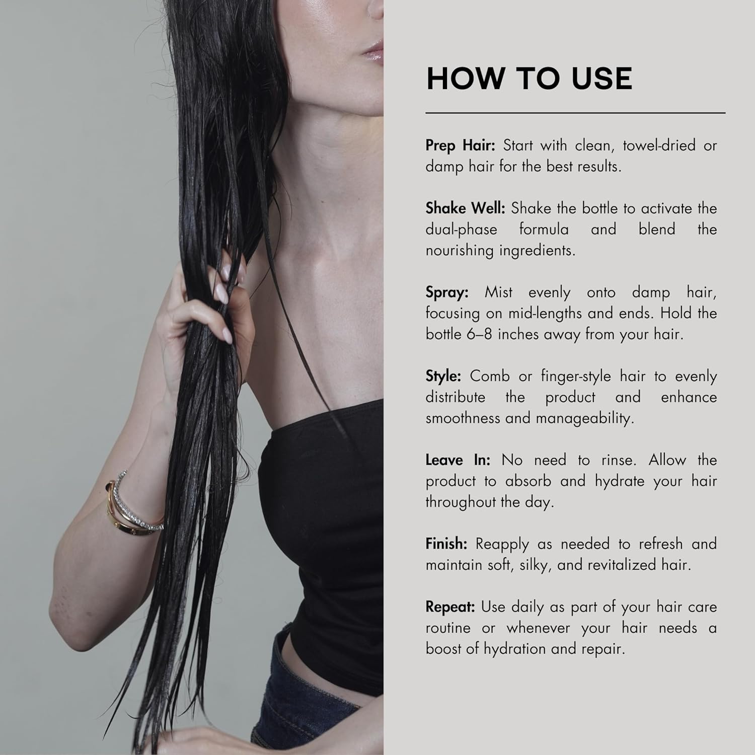 • Biphasic Repair And Moisture: This leave-in conditioner spray, suitable for all hair types, including sensitive skin, repairs split ends and improves texture. This hair detangler spray leaves hair softer and refreshed for effortless styling, eliminating the need to rinse