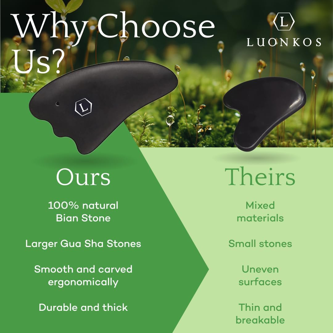• Nature-Inspired Beauty: Embrace Finnish craftsmanship with the LUONKOS Gua Sha Tools Set, crafted from authentic Bian Stone. These face massager tool and gua sha body tool support a holistic skincare routine with versatile designs for comprehensive care