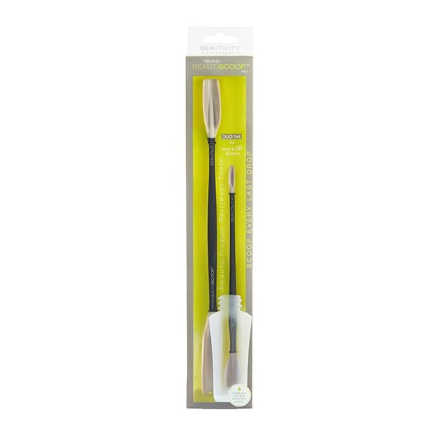 • The Ultimate Beauty Tool: This dual-scoop beauty tool is a must-have for every woman’s beauty arsenal. The recoup BEAUTISCOOP’s Dual Scoops fit into the narrow openings of the smallest-to-tallest containers to reach every drop you paid for of your favorite products.