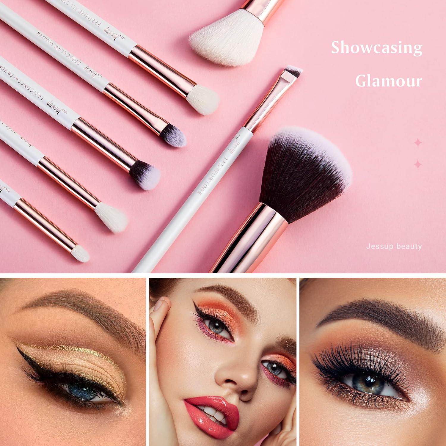 Jessup Brand 25pcs Professional Makeup Brush set Beauty Cosmetic Foundation Power Blushes eyelashes Lipstick Natural-Synthetic Hair Brushes set (Pearl White/Rose Gold)