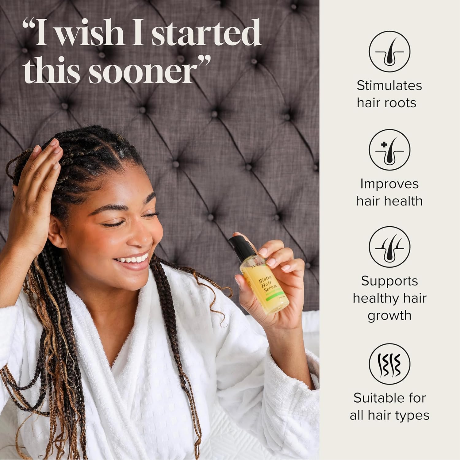 • Biotin Hair Growth - Give your hair the appearance of thicker hair with our Biotin hair serum. The Biotin oil alternative, our hair thickening serum is a non-greasy topical Biotin. Biotin hair serum for women and men also gives the appearance of thicker looking hair.