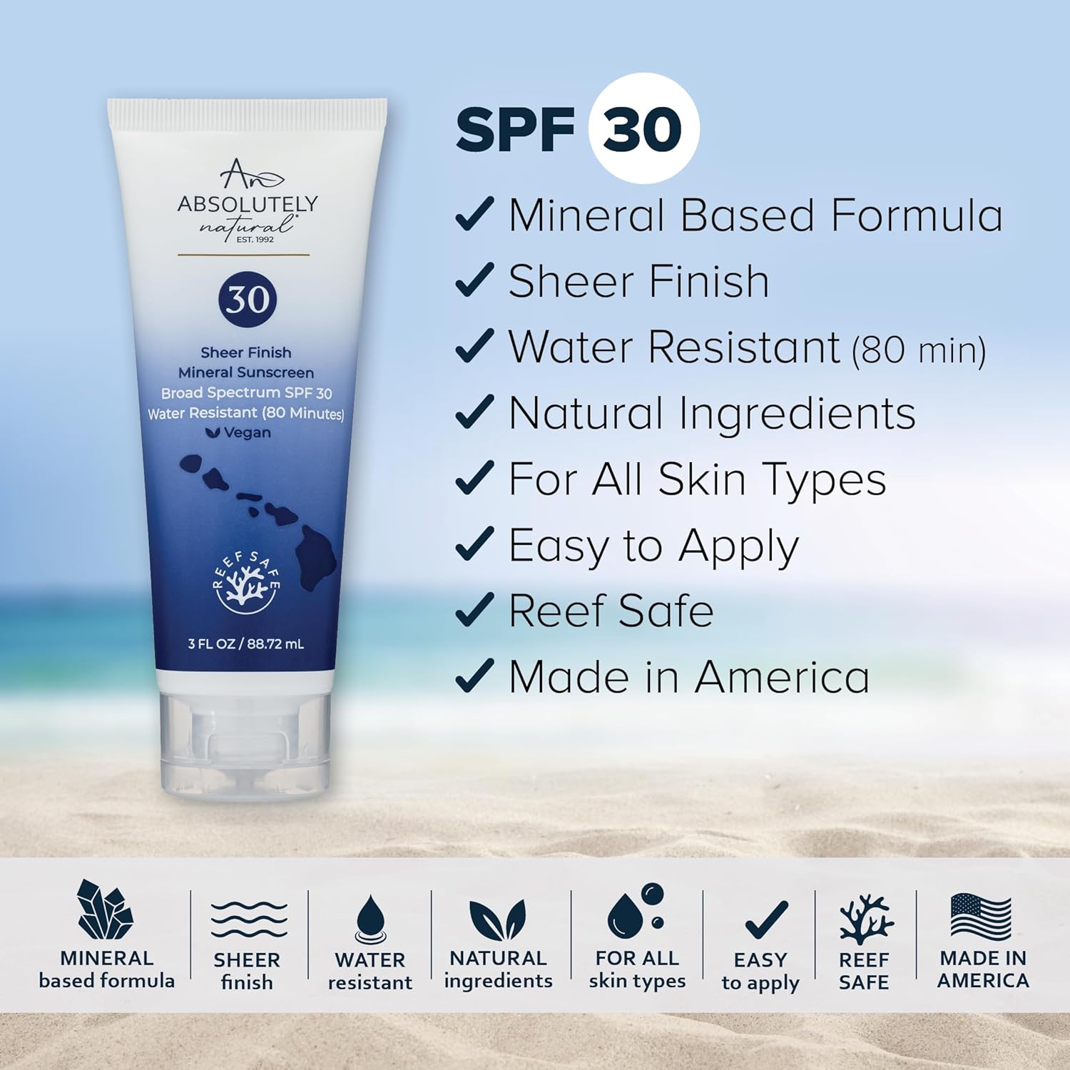 • ADVANCED SUN PROTECTANT: Experience superior sun protection with Sheer SPF 30 by Absolutely Natural, guarding your skin against harmful UV rays. This advanced formula not only shields but also maintains the softness and radiance of your skin, ensuring a comprehensive and luxurious sun care experience.