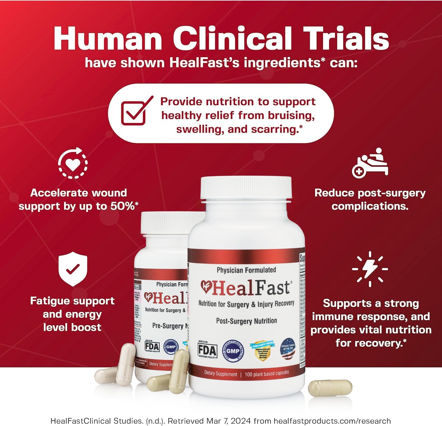• SURGERY-SAFE, SURGEON & ANESTHESIOLOGIST APPROVED RECOVERY VITAMIN - HealFast is the industry leading surgery supplement backed by a network of physicians to provide a fast recovery