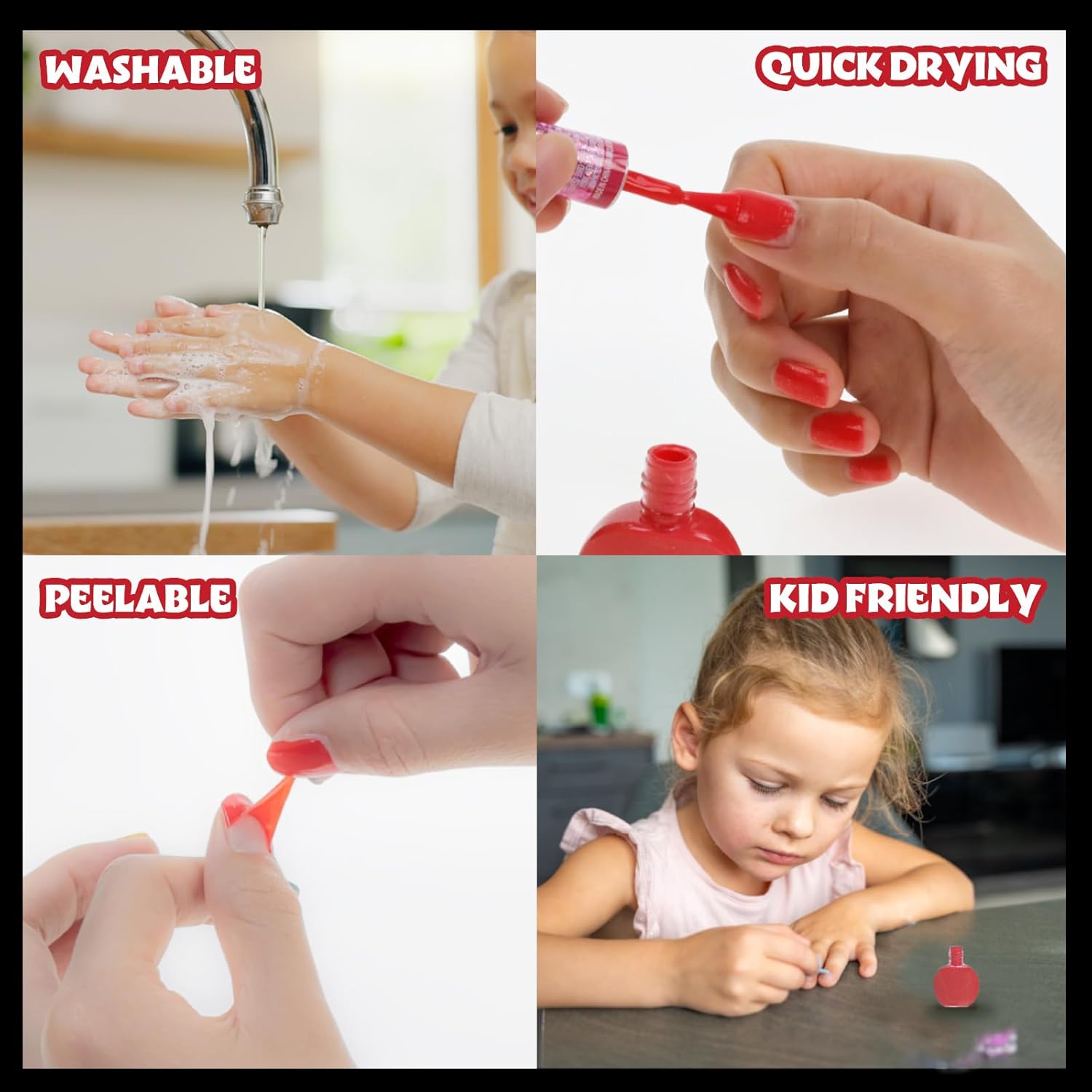 • POLISH REMOVER NOT REQUIRED - Simply peel off dried polish to remove it from nails. No need to expose your child to harmful vapors and chemicals that are in standard nail polish removers.