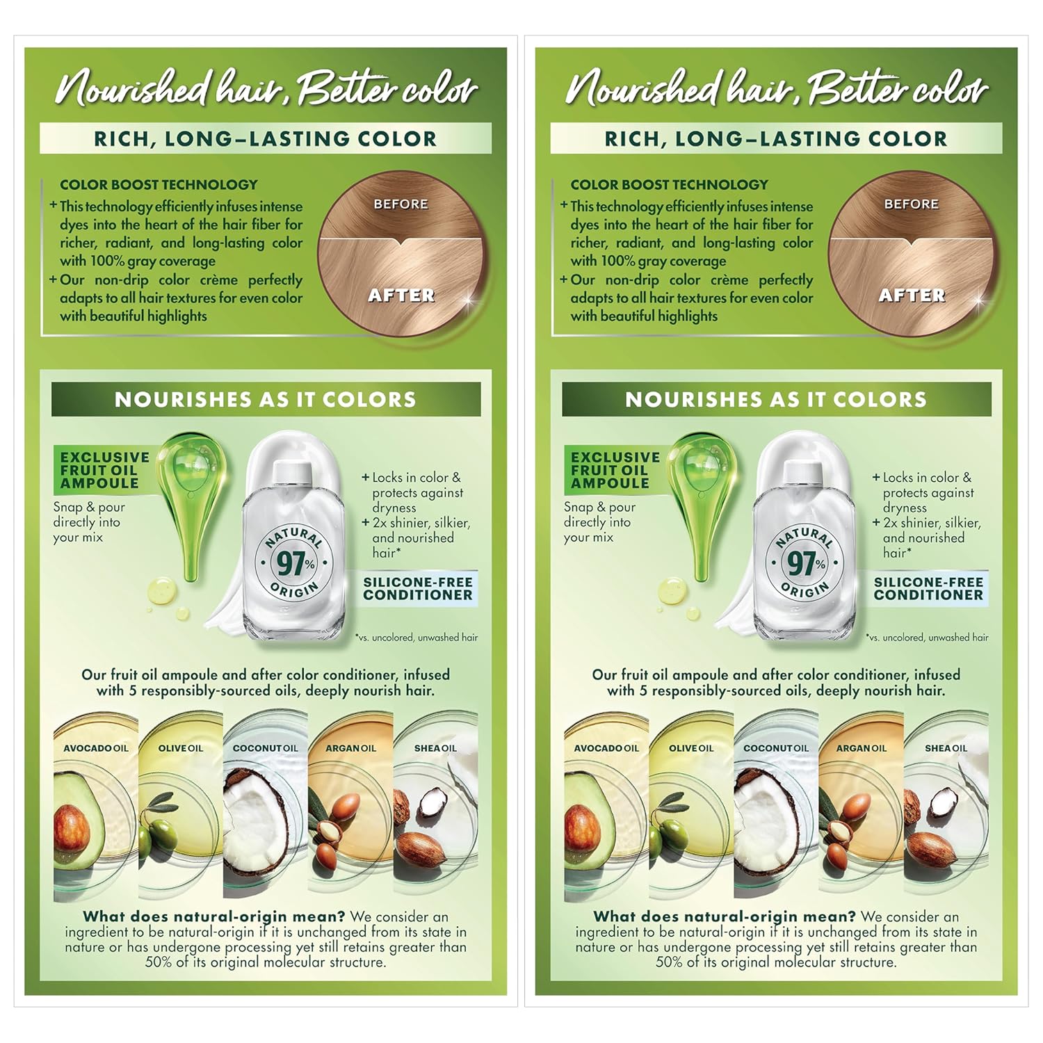 • Hair Dye Kit: The only hair color with a separate fruit oil ampoule that you snap & pour directly into the mix; Follow hair dye with our after color hair conditioner, infused with a blend of 5 fruit oils: avocado, olive, shea, argan & coconut oil