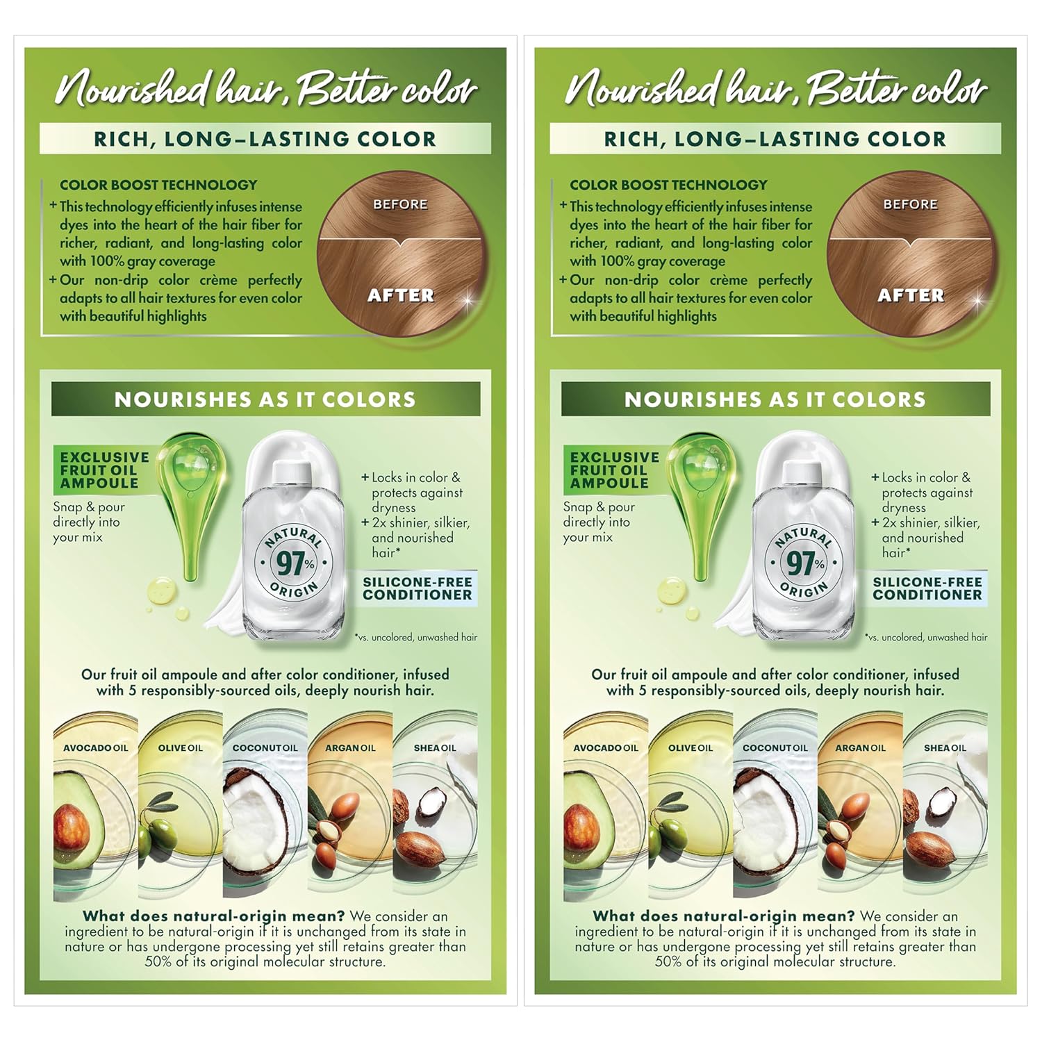 • Product Benefits : Garnier Nutrisse hair color creme nourishes while you color with avocado, olive, and shea oils. The nourishing color creme enriched with fruit oil concentrate penetrates deep into hair fibers to nourish and condition your hair so it takes color better and holds it longer, root-to-tip. Garnier Nutrisse delivers rich, radiant, long-lasting hair color with 100% grey coverage. Garnier Nutrisse hair color creme nourishes while you color with avocado, olive, and shea oils. The nourishing color creme enriched with fruit oil concentrate penetrates deep into hair fibers to nourish and condition your… See more