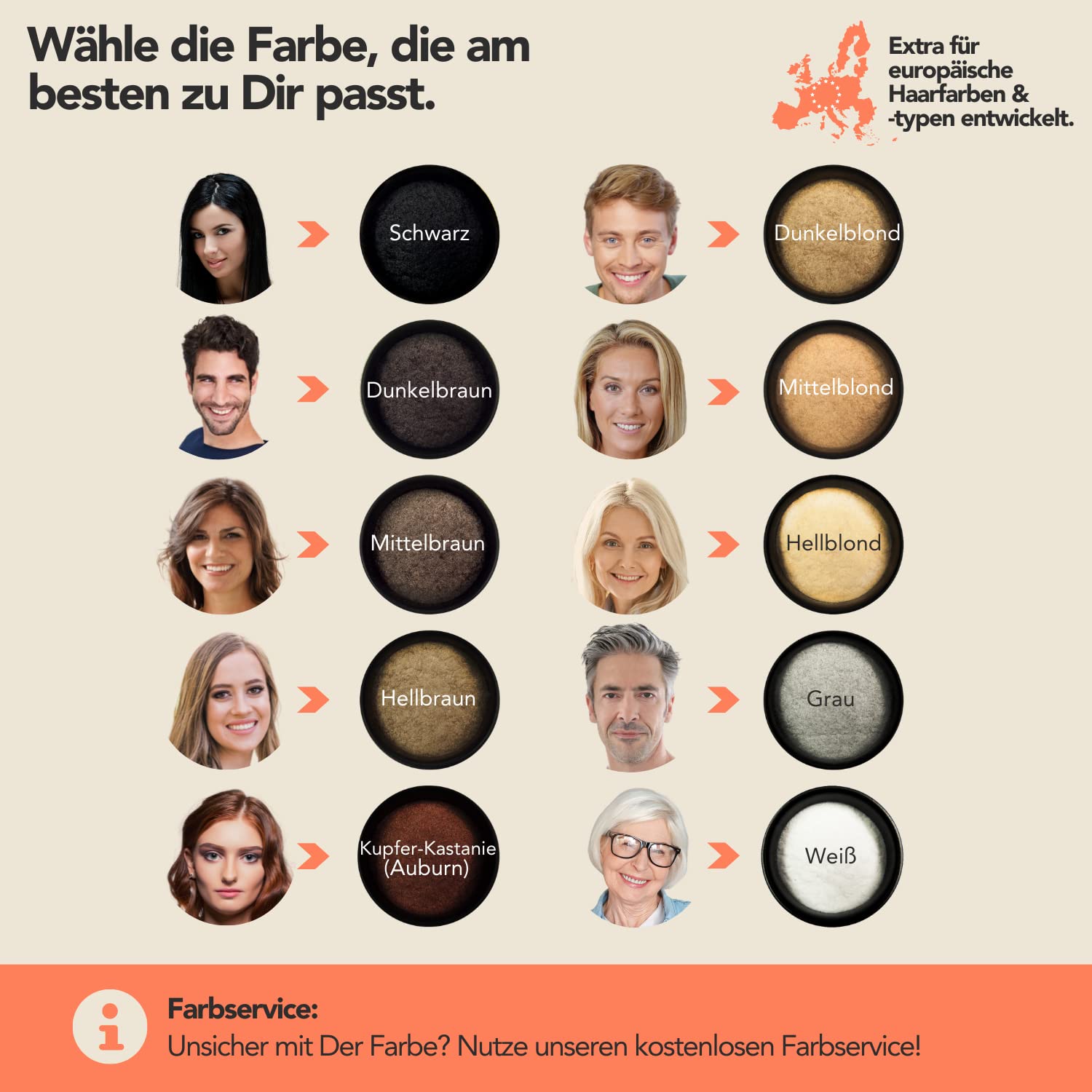 • "PERFECT COLOR CHOICE - Choose your hair color from 9 natural shades. If you are unsure or torn between two colors, opt for the darker one! We are happy to offer you a personal service. Send us a photo via support, and we will tell you which color of the thinning hair cover up you need.