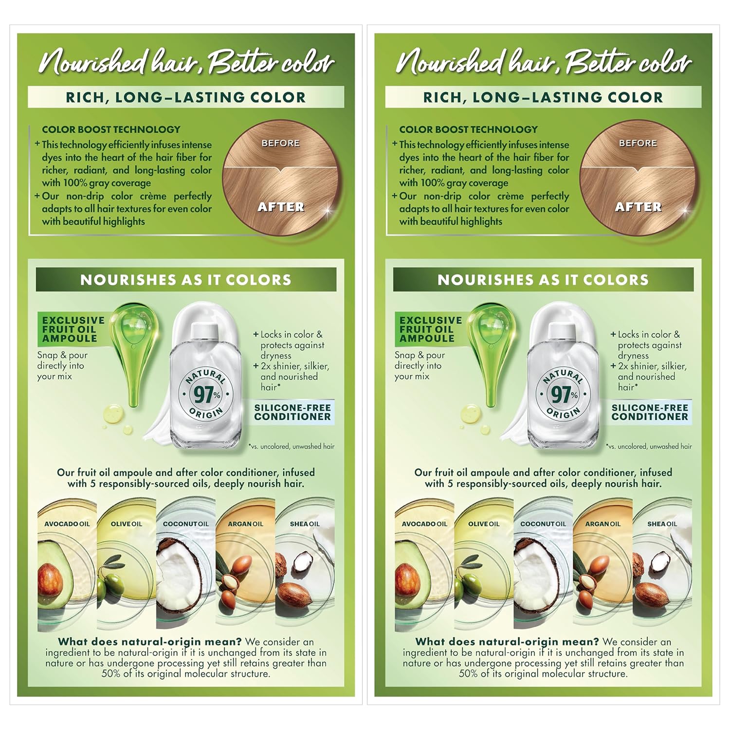 • Hair Dye Kit: The only hair color with a separate fruit oil ampoule that you snap & pour directly into the mix; Follow hair dye with our after color hair conditioner, infused with a blend of 5 fruit oils: avocado, olive, shea, argan & coconut oil