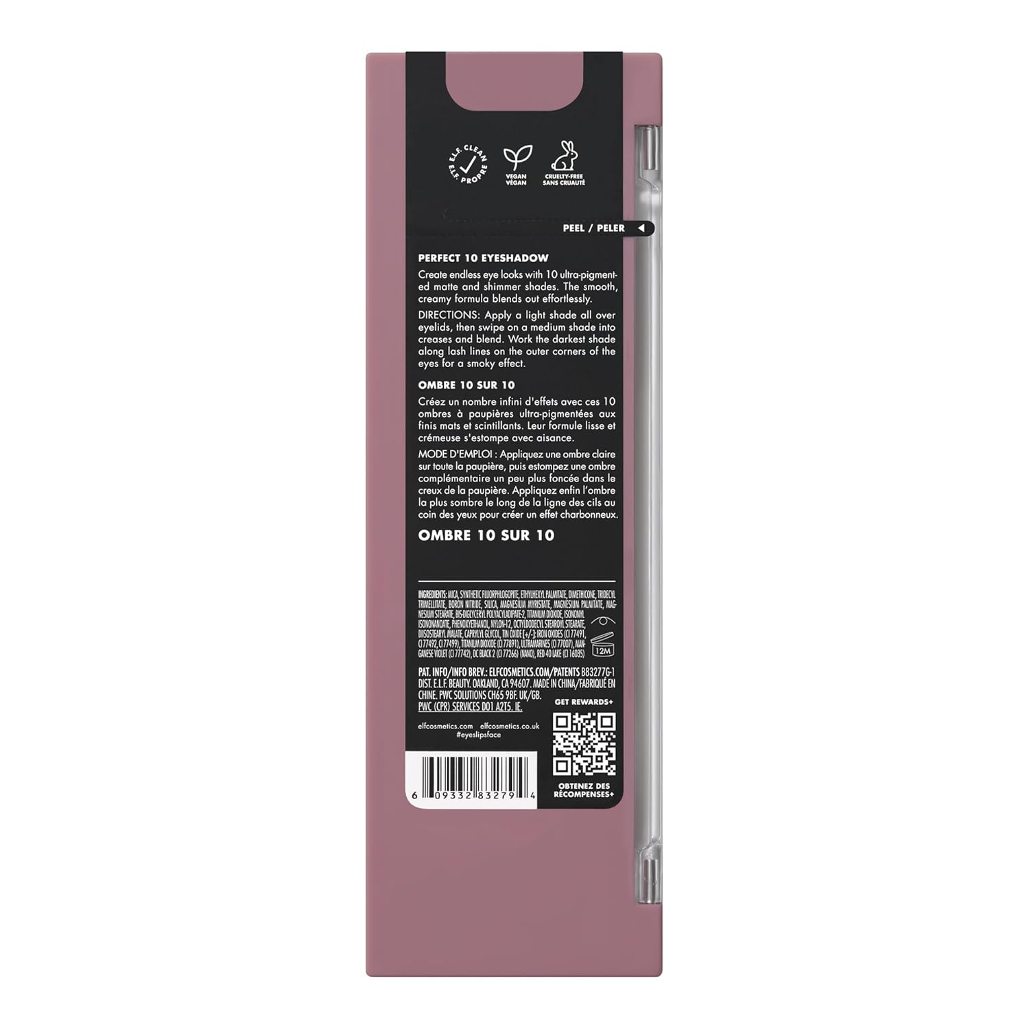 • 10 ULTRA-PIGMENTED SHADES: Make your eyes the prize with the e.l.f. Perfect 10 Eyeshadow Palette. Get inspired with this 10-color eye palette, perfect for creating a variety of eye-catching looks.