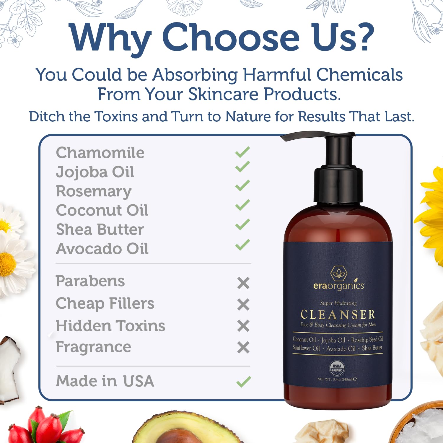 • Finally, A Face and Body Wash For Men That’s Actually Good For Your Skin. No more chemicals, sulfates or drying toxins that strip your skin. Get smoother, stronger, healthier looking skin with the power of Nature.