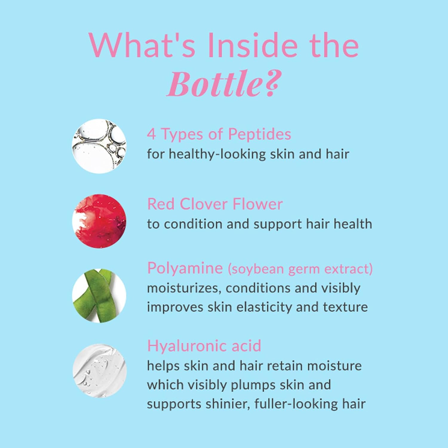 • Special Ingredients : 4 Types of Peptides: Support healthy-looking skin and hair., Hyaluronic Acid: Helps nourish dry and damaged lashes with hydrating properties to help skin and hair retain moisture. Visibly plumps skin and supports shinier, fuller-looking hair., Polyamine (soybean germ extract): Helps moisturize, condition and visibly improve skin elasticity and texture., Red Clover Flower Extract: Powerful antioxidant with a high content of isoflavones that is known to support hair health. 4 Types of Peptides: Support healthy-looking skin and hair., Hyaluronic Acid: Helps nourish dry and damaged lashes with hydrating properties to help skin and hair retain moisture. Visibly plumps skin and supports shinier, fuller-lo… See more