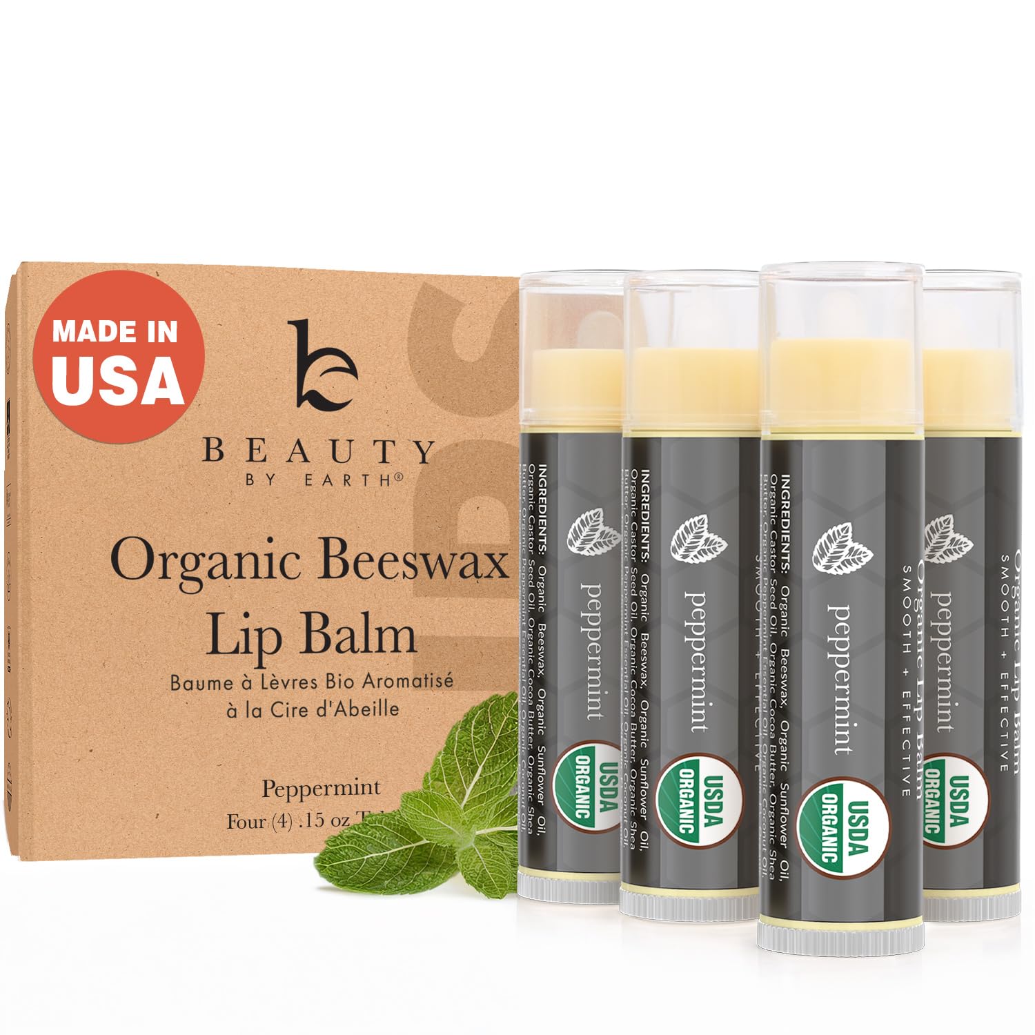 USDA Organic Peppermint Lip Balm - USA Made with Natural Ingredients, Chapstick for Dry Lips, Birthday Gifts for Her & Him, Hydrating Beauty Gifts for Women, Men, Teens & Kids, Lip Moisturizer